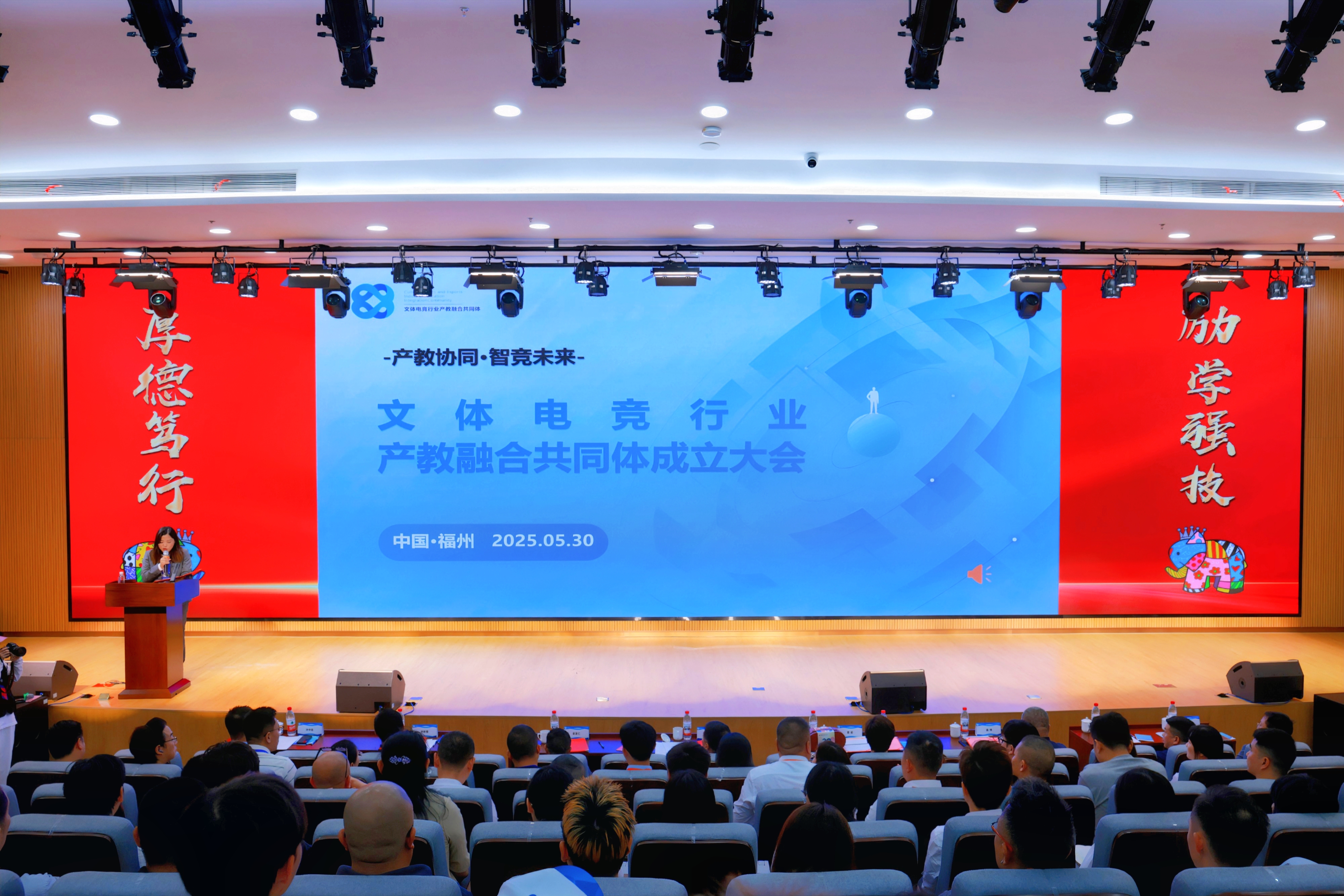 文体电竞行业产教融合共同体成立大会暨产教融合专题论坛于庆典当天隆重举行,行业专家、企业代表与学校师生齐聚一堂,围绕产教融合议题展开深度交流,为学校人才培养模式创新与行业高质量发展注入澎湃动能。