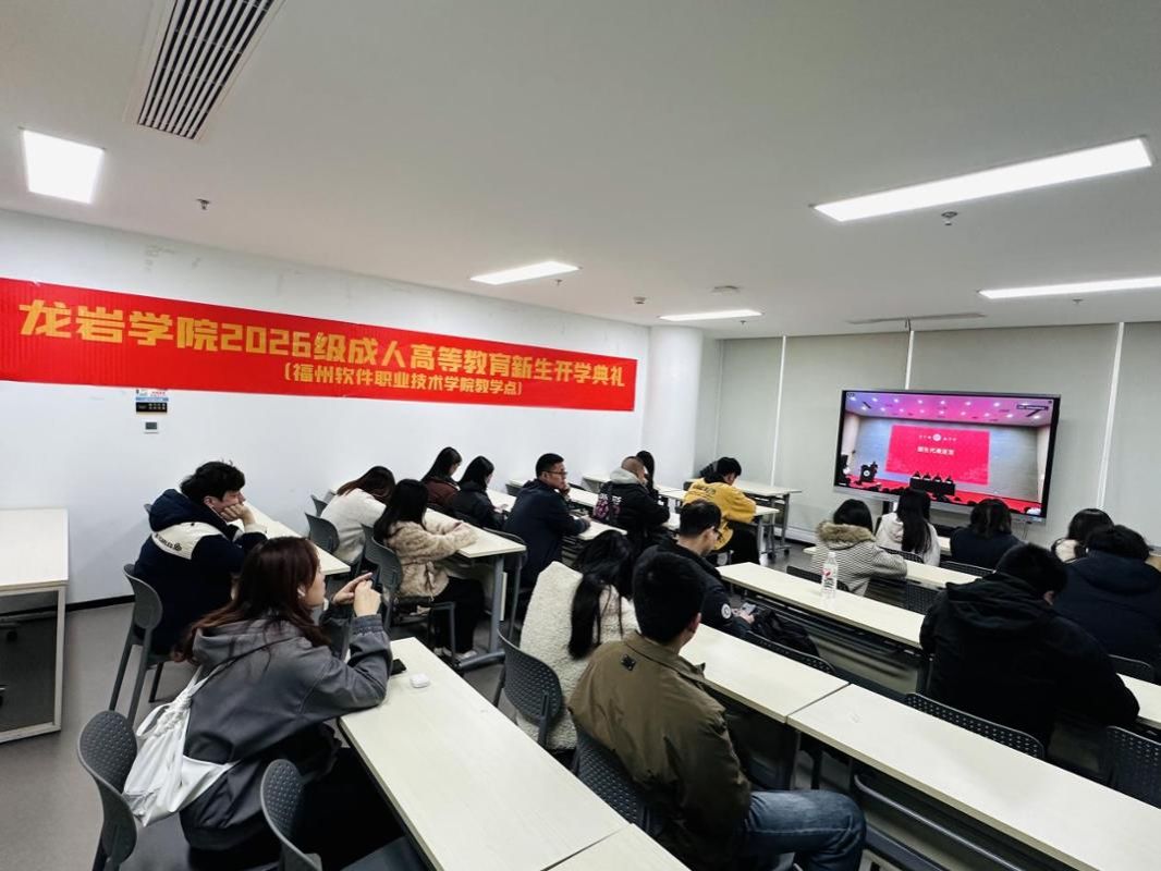近日,龙岩学院2026级成教新生开学典礼在校本部以“线上+线下”方式举行。我校作为龙岩学院校外教学点,积极组织本教学点学生集中观看直播,助力学生开启全新学习篇章。