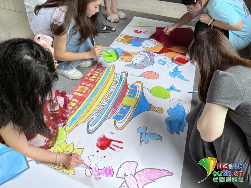 图为学生参与校团委举办的国庆打卡活动。中国青年网通讯员 陈雅冰 摄