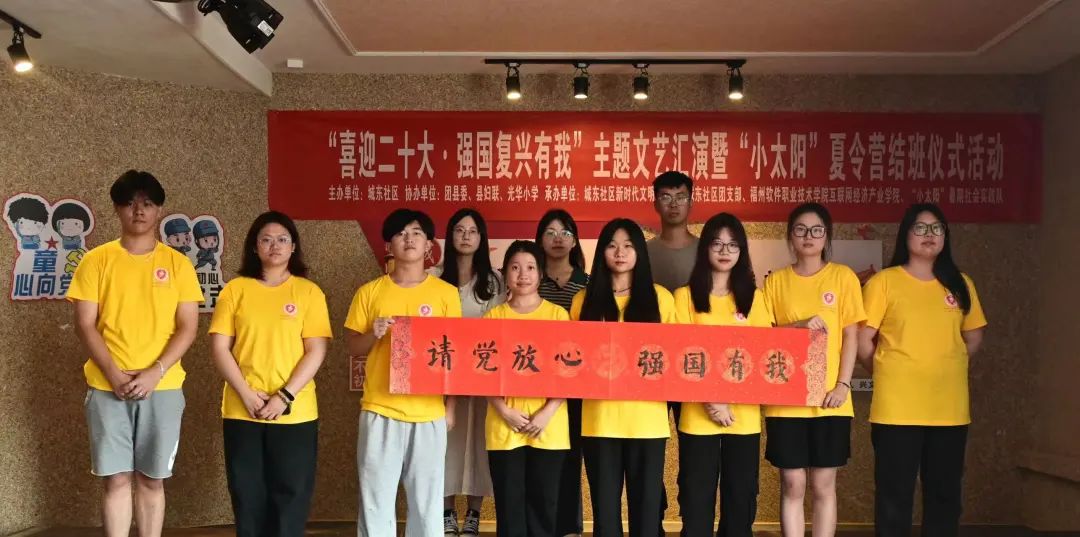 为深入落实习近平总书记关于青年工作的重要思想,以实际行动迎接党的二十大,深入开展“强国复兴有我”群众性主题宣传教育活动,进一步深化拓展新时代文明实践活动形式,激发引导我县青少年热爱生活、热爱艺术的丰富情感,营造“关心、重视”儿童健康成长的浓厚氛围,8月17日,屏南团县委联合县妇联、城东社区新时代文明实践站、光华小学以及福州软件职业技术学院互联网经济产业学院暑期“小太阳”社会实践队开展“喜迎二十大·强国复兴有我”主题文艺汇演暨“小太阳”夏令营结班仪式活动。