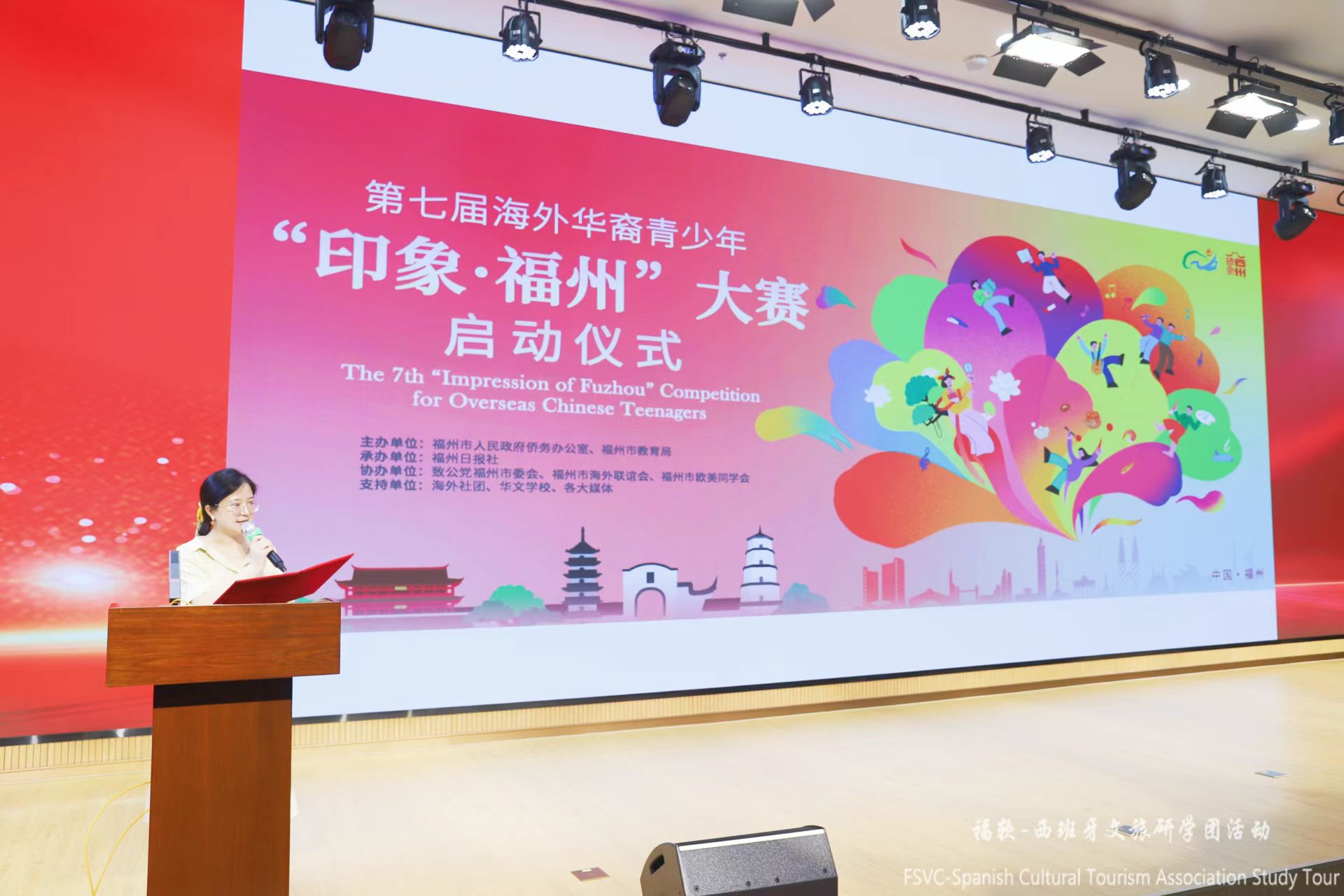 仪式环节庄重而富有象征意义。我校校长助理、工会主席柯建琳向西班牙文旅研学团团长授予营旗,这面旗帜象征着责任与友谊,将引领大家开启一段收获满满的旅程。随后,我校与福州日报社国际传播中心、“印象•福州”大赛项目负责人詹舒清共同启动了“印象福州”文化记录项目。鼓励西班牙师生用镜头和文字记录研学中的精彩瞬间,以独特的视角讲述福州故事,让福州故事走向世界。
