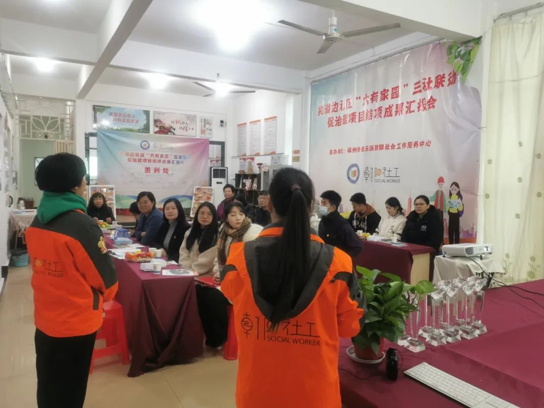 2023年12月18日,数字金融产业学院受邀参加福州市长乐区关湖社区“六有家园”三社联动促治理项目结项成果展示会。会议上,朝阳社会工作服务中心回顾了2020年至2023年这三年间的服务历程,各共建单位对下一阶段如何使项目精细化、服务有效化、形式多样化进行充分交流探讨。