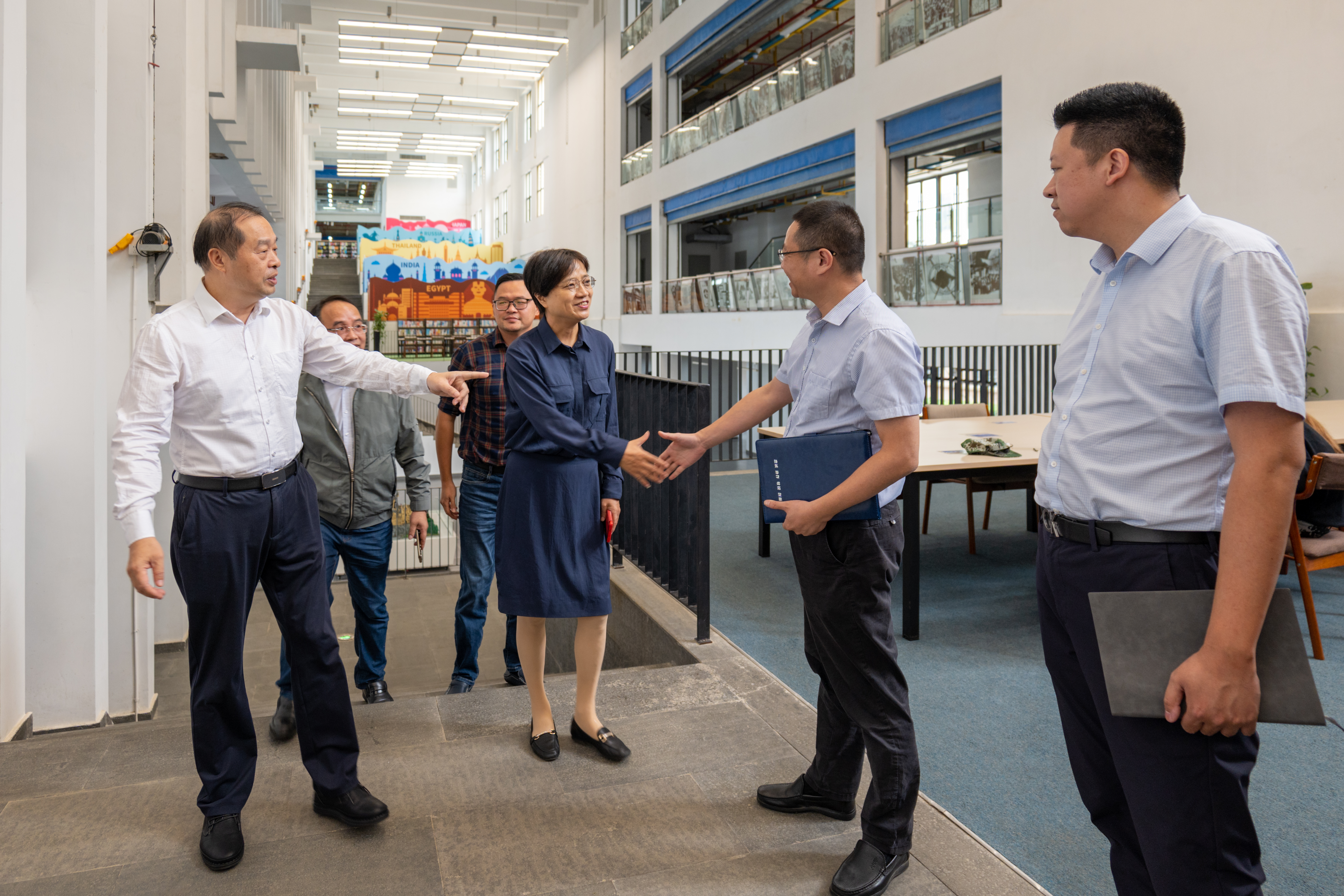 同时,学校党政及相关部门领导陪同福州城投集团领导一行先后参观了学校图书馆、VR智慧教室、孔春霞剪纸工作室、容艺影视产业学院实训室、现代通信产业学院实训室及电子竞技实训室等,并就我校办学理念、办学情况、信息化数字化教学配套设施建设作了详实介绍。