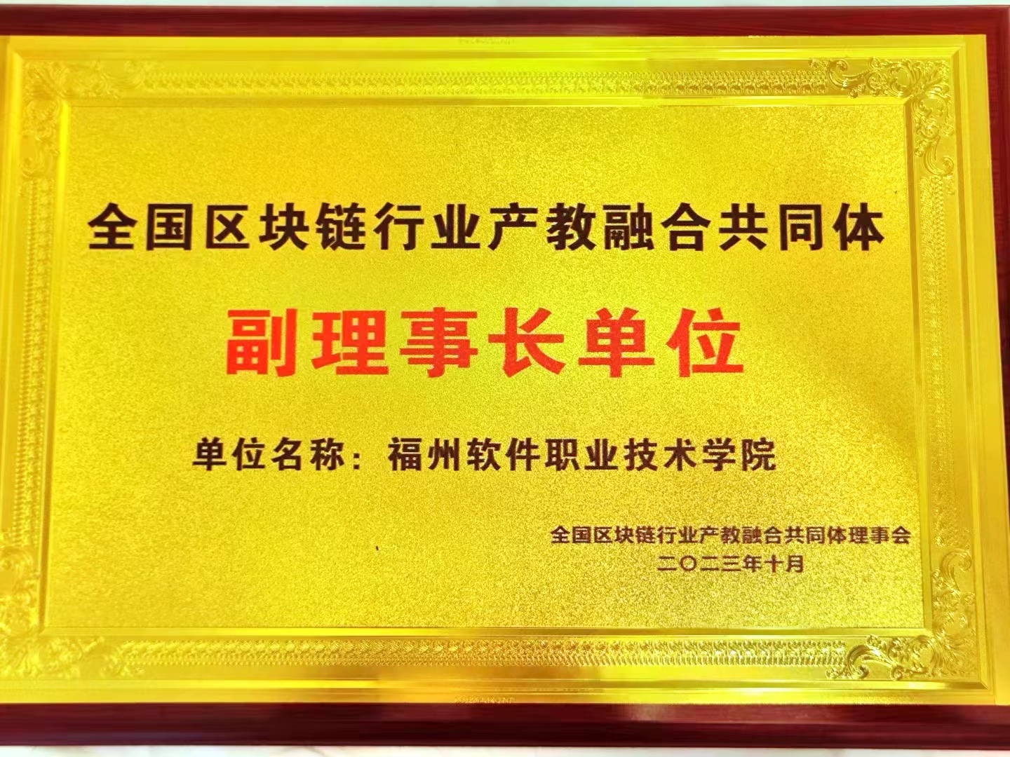 福州软件职业技术学院被授予全国区块链行业产教融合共同体副理事长单位