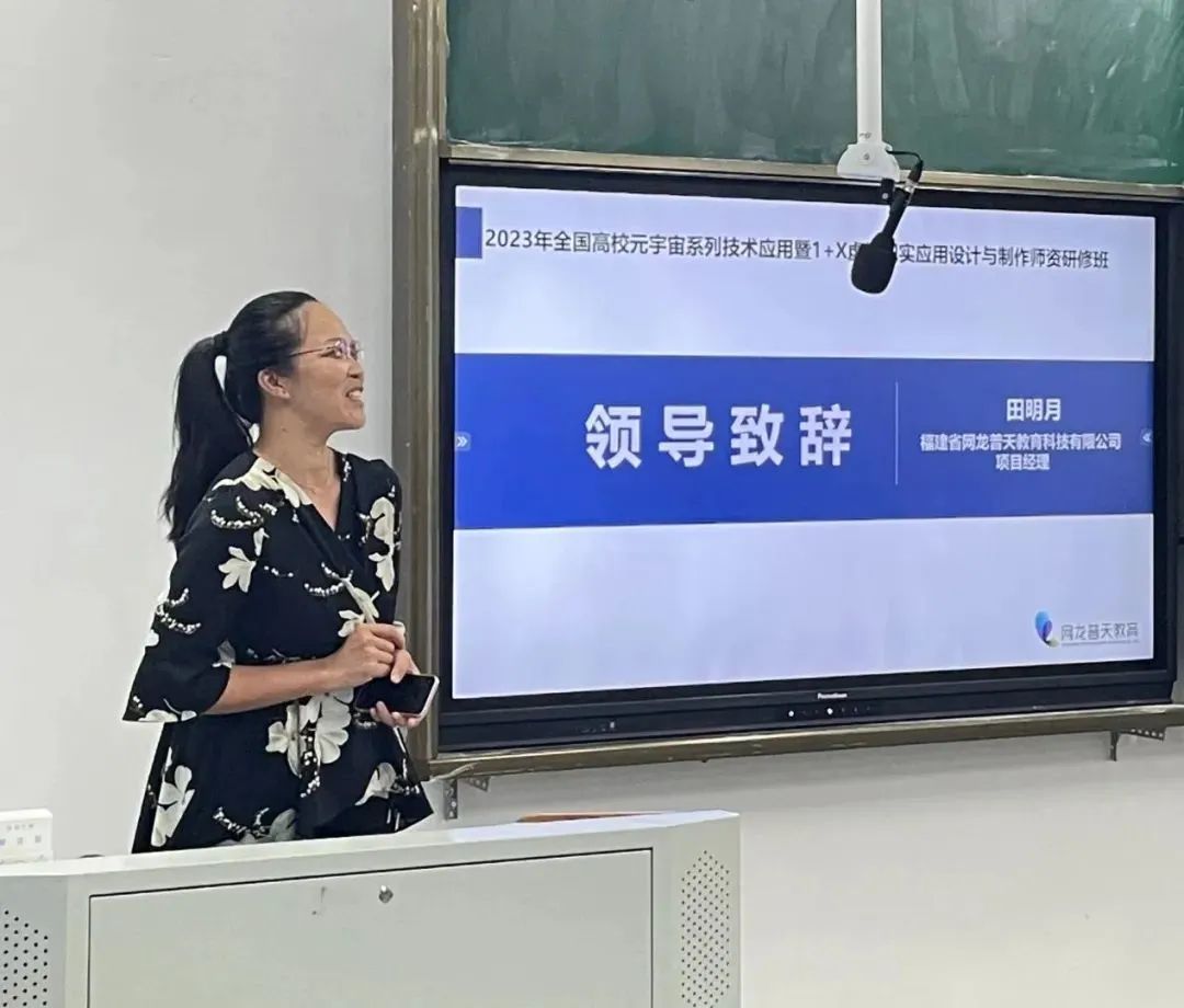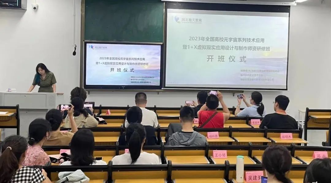 7月18日,由福建省网龙普天教育科技有限公司与福州软件职业技术学院联合开展的2023年全国元宇宙系列技术应用暨1+X虚拟现实应用设计与制作师资研修班开班仪式在福州软件职技术学院成功举办。福州软件职业技术学院游戏产业学院副院长徐颖以及福建省网龙普天教育科技有限公司项目经理田明月等老师应邀出席了开班仪式并致辞。
