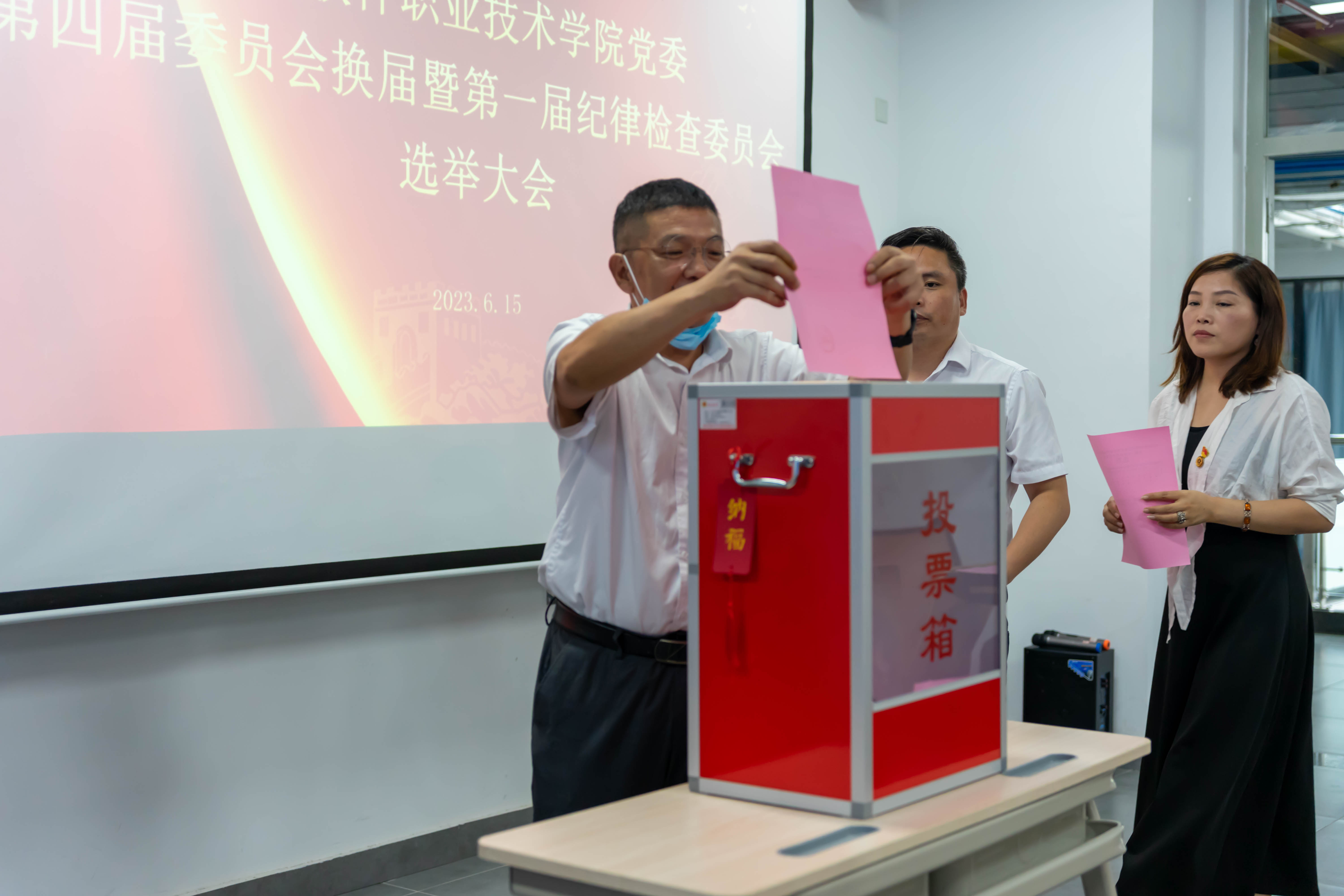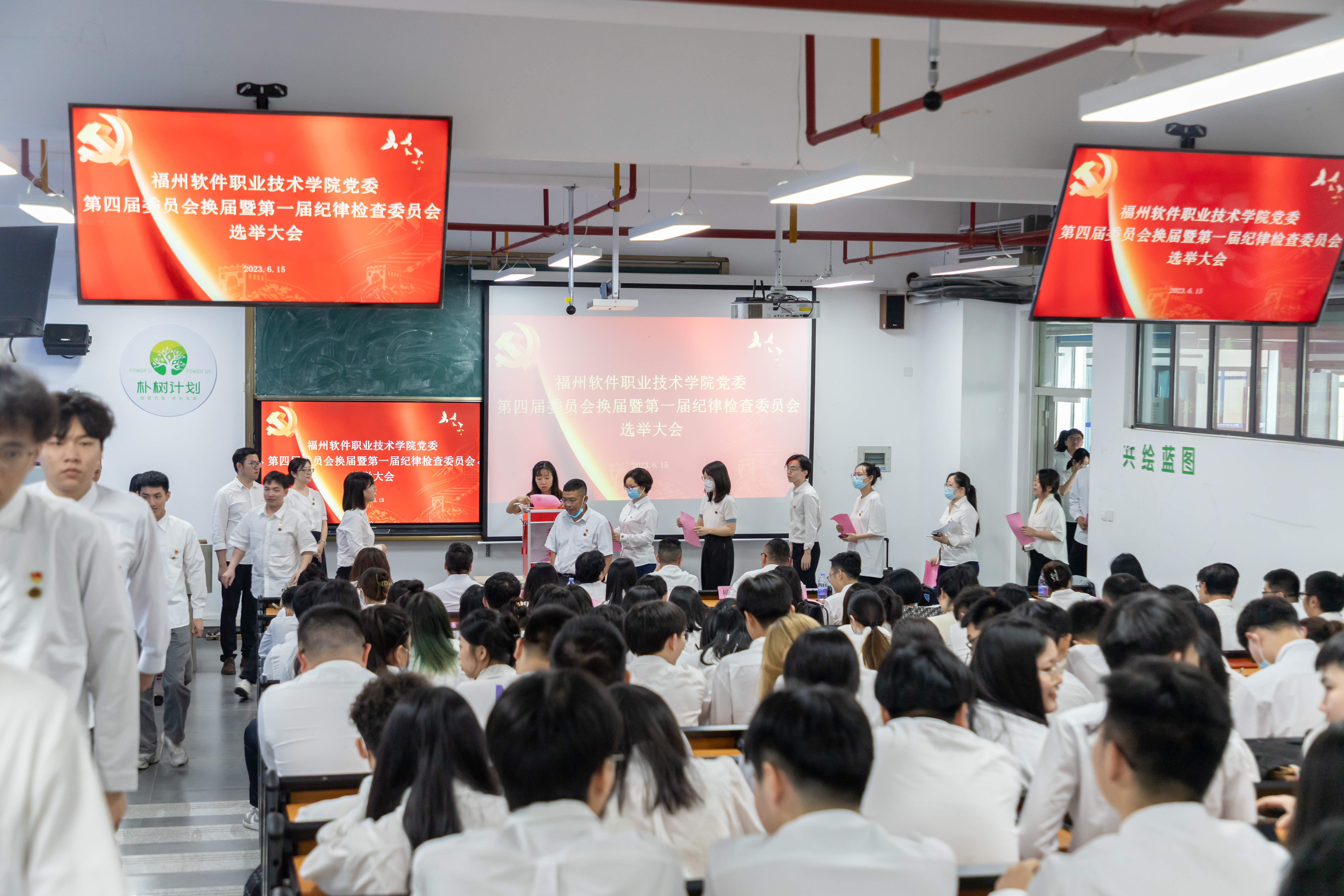2023年6月15日上午,福州软件职业技术学院党委第四届委员会换届选举暨第一届纪委委员会选举大会在教学楼A505、A506隆重举行。第三届校党委书记林莺同志,统战委员、执行校长俞发仁同志,组织委员、副校长王秋宏同志,纪检委员李榕玲同志,宣传委员彭静同志,副校长林土水同志,校长助理柯建琳同志和全校师生党员共同参加了会议。大会由第三届校党委副书记林艺勇同志主持。