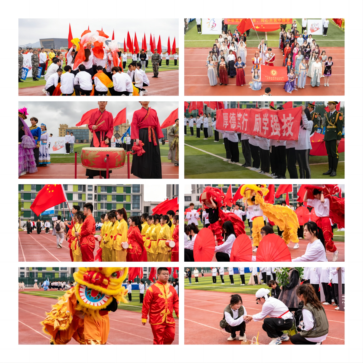 护旗入场,队员们手举国旗,步伐庄严,一丝不苟,充分体现了福州软件职业技术学院“厚德笃行 励学强技”的校训文化。各单位运动员方队等依次入场,方阵步伐整齐、口号响亮、不畏风雨,昂首阔步走入赛场,充分展现了学校师生精神饱满积极向上的风采。