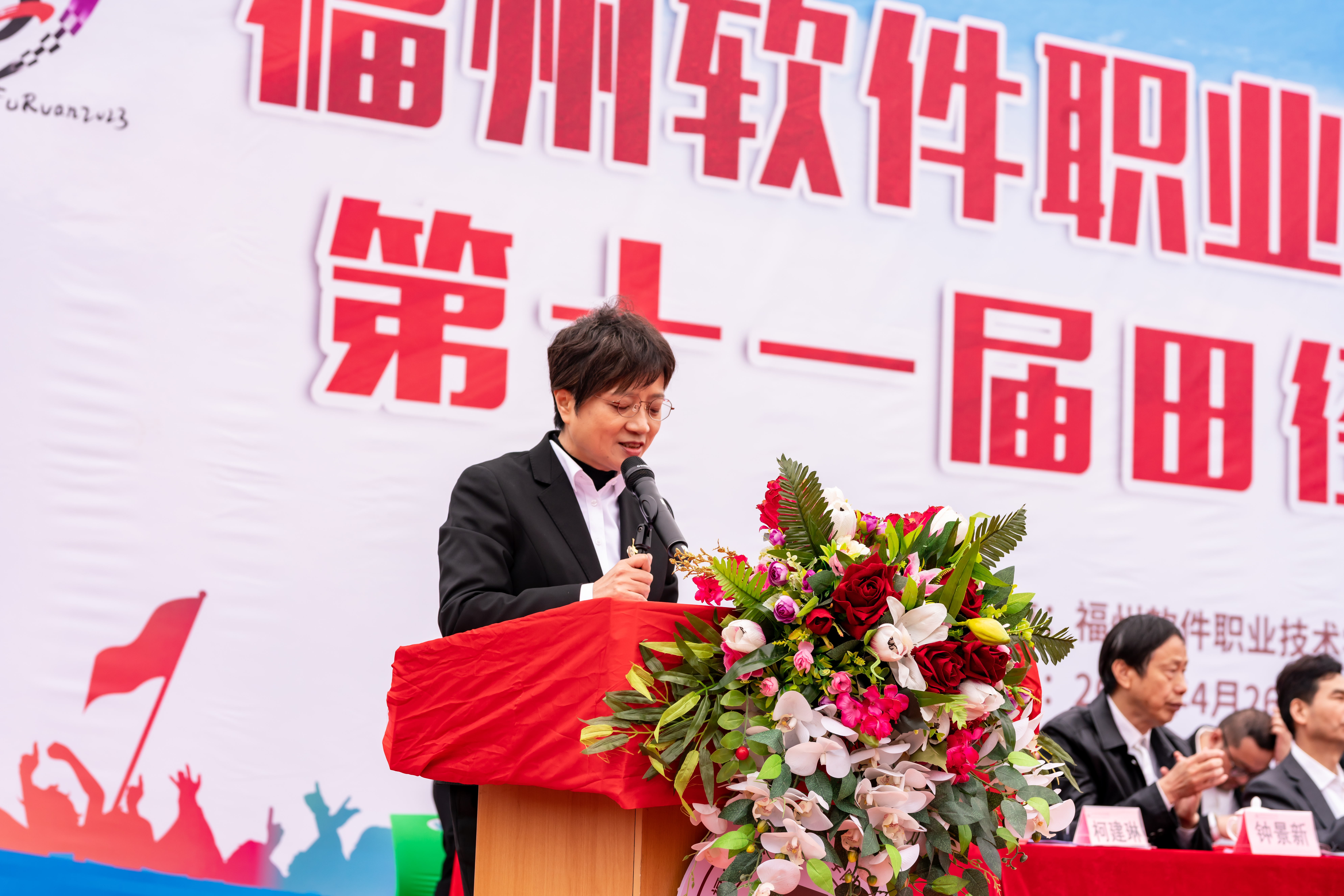 校党委林莺书记致开幕词,她对本次运动会的召开表示热烈的祝贺。她指出,体育强则中国强,国运兴则体育兴,习近平总书记在党的二十大报告中指出要“广泛开展全民健身活动,加强青少年体育工作,促进群众体育和竞技体育全面发展,加快建设体育强国。”我校高度重视体育工作。近年来,学校持续深化体育教学改革,加强体育教研室建设,加大各类体育设施建设与改造投入,积极推进全民健身和竞技体育运动。学校第11届田径运动会,是2019年从福州市区搬迁到长乐校区以来,举办的第一次运动会,也是建校以来参加人数最多、比赛项目最多、赛程最长的一届体育盛会,举办不易、意义非凡。她希望全体运动员赛出风格、赛出水平、赛出友谊,全体教练员、裁判员和工作人员要严守规程、公平公正、密切配合、热情服务、全力保障。祝愿全体参赛运动员和代表队取得优异成绩!预祝校第11届田径运动会圆满成功!
