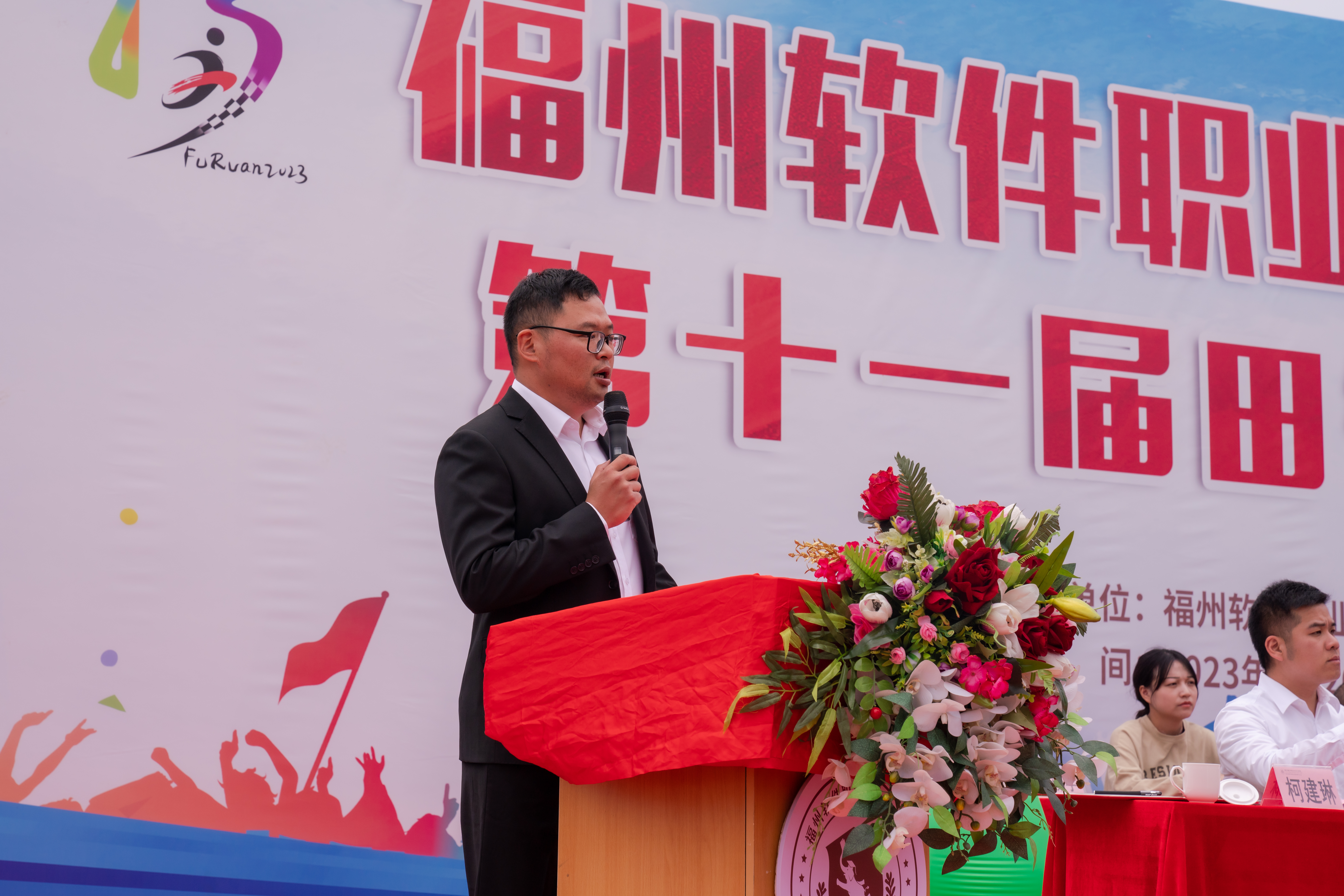 颁奖典礼后,运动会组委会主任、执行校长俞发仁为本届运动会致闭幕词。他代表学校党政班子向此次运动会参赛代表队和运动员表现出的积极进取、奋发向上的体育精神表示诚挚的敬意!向辛勤奉献的全体裁判员、工作人员和青年志愿者表示衷心的感谢!并对此次体育比赛中展现出的新时代福软人团结协作、奋勇拼搏的体育精神给予高度肯定。他指出,学校将继续坚持“以体育人”,把学校体育工作摆在更加突出位置,加快推进各类体育场馆设施建设,广泛组织开展体育活动,持续深化体育教育教学改革,大力营造校园体育文化。与此同时他也希望全校师生将赛场上顽强拼搏的精神带到今后的学习工作生活中去,为加快建设数字特色鲜明的高水平职业院校注入新的活力!为全面建设社会主义现代化国家、全面推进中华民族伟大复兴贡献力量!