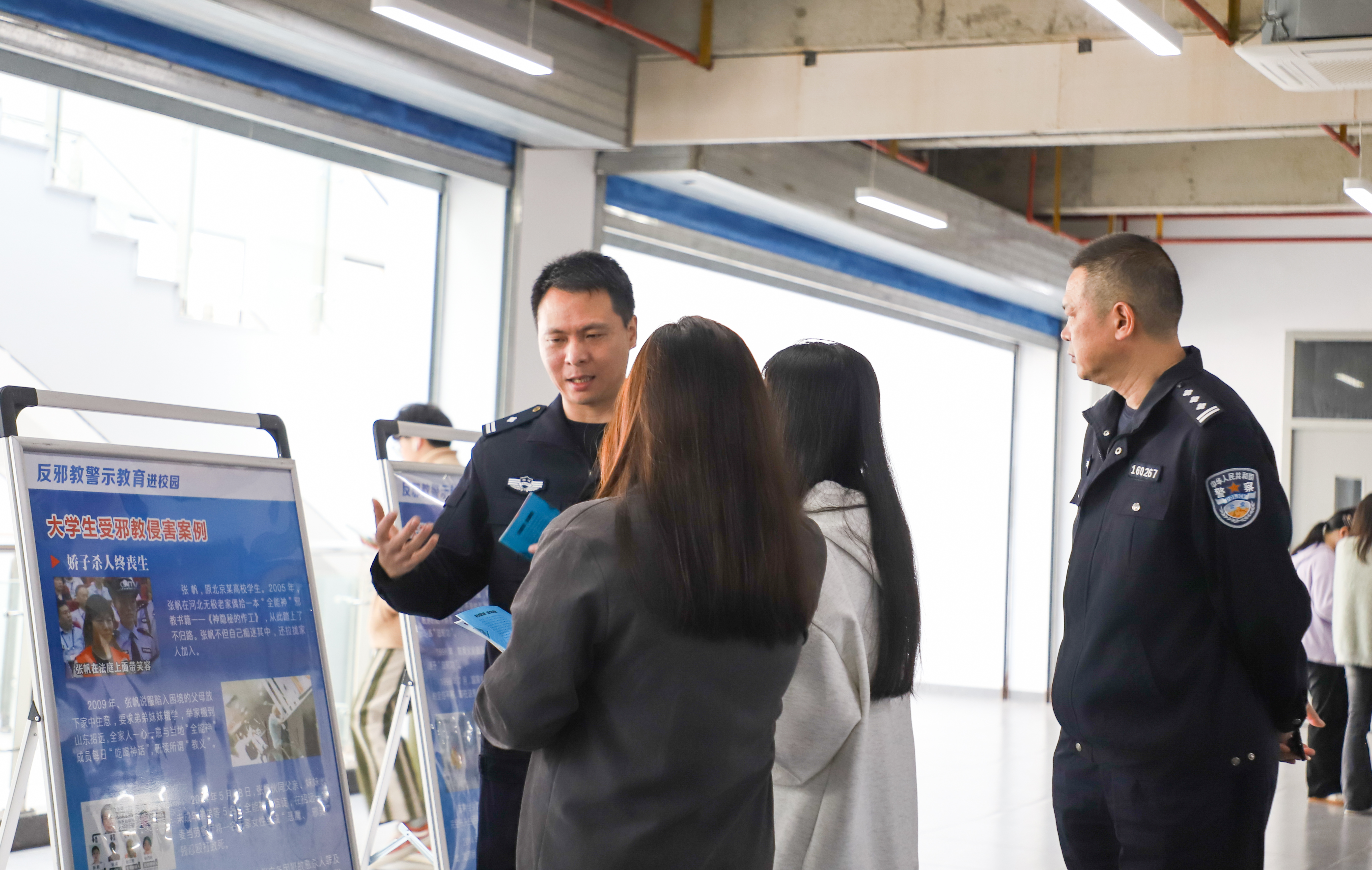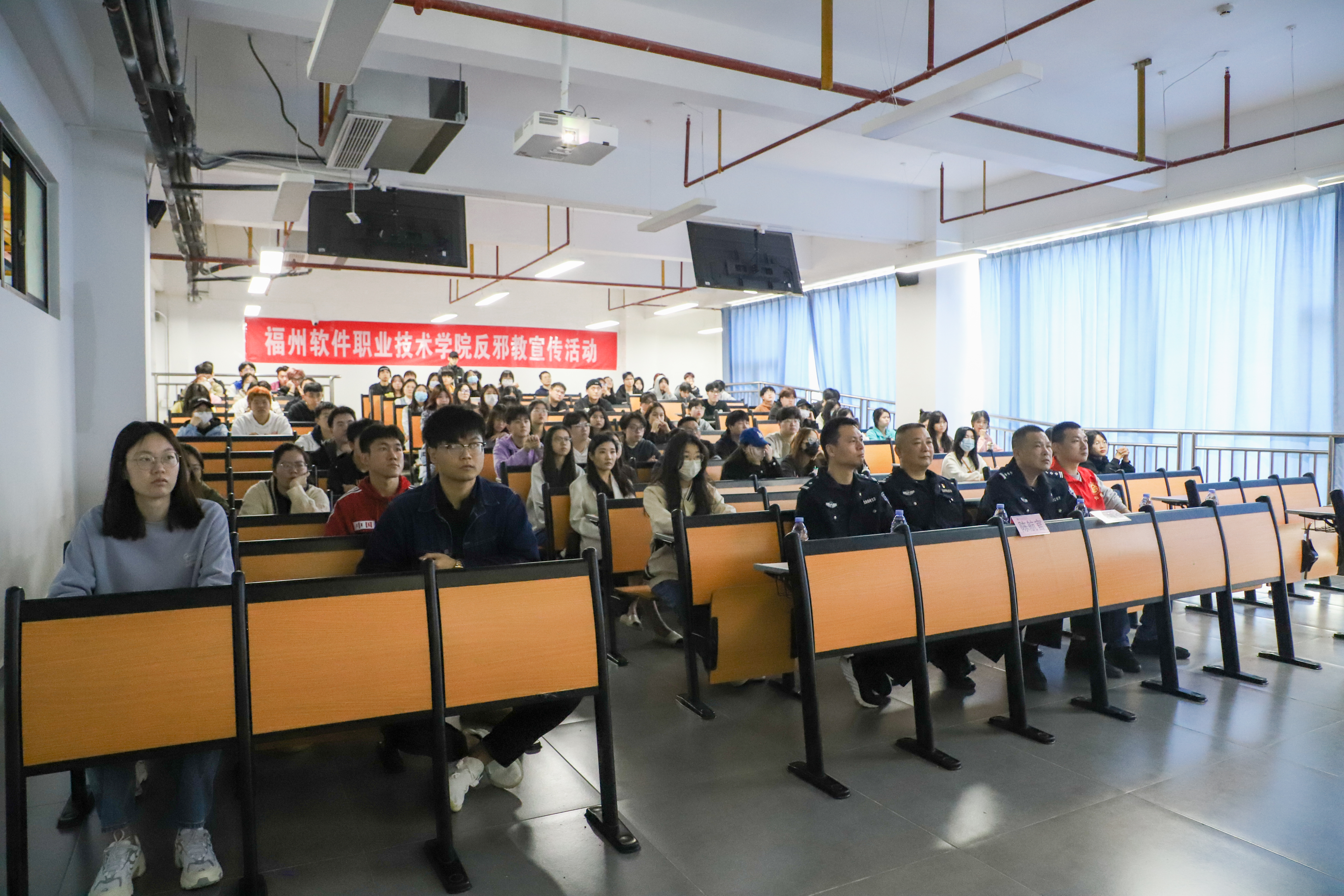 为进一步贯彻落实“反邪教警示教育进校园”活动,提高全校师生员工反邪教意识,警惕邪教渗透,谨防落入邪教陷阱,在第8个全民国家安全日到来之际,4月11日上午,我校特邀长乐区公安局国保大队的李善煌、陈航官、林洁如、池松清四位警官来校开展以反邪教为主题的警示教育宣传活动。