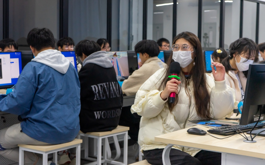 《虚拟现实概论》是游戏产业学院省级高水平虚拟现实技术应用专业群的底层融通一体化课程,本次实验课由游戏产业学院邢璎凡老师远程主讲,华中师范大学教育信息化发展中心李晋老师和游戏产业学院VR实训中心唐炜韬老师线下协同教学,22级虚拟现实技术应用3班46名同学共同完成。