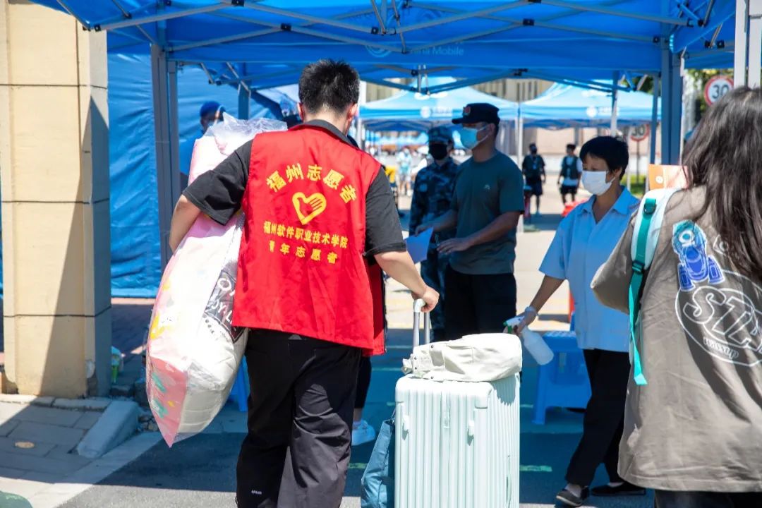 扣上福软专属行李卡,举起福软专属手幅。咔嚓!萌新打卡成功,这一刻你已正式加入福软大家庭,学校领导来到迎新现场和学生宿舍,详细了解新生报到情况,亲切慰问现场工作人员与志愿者。