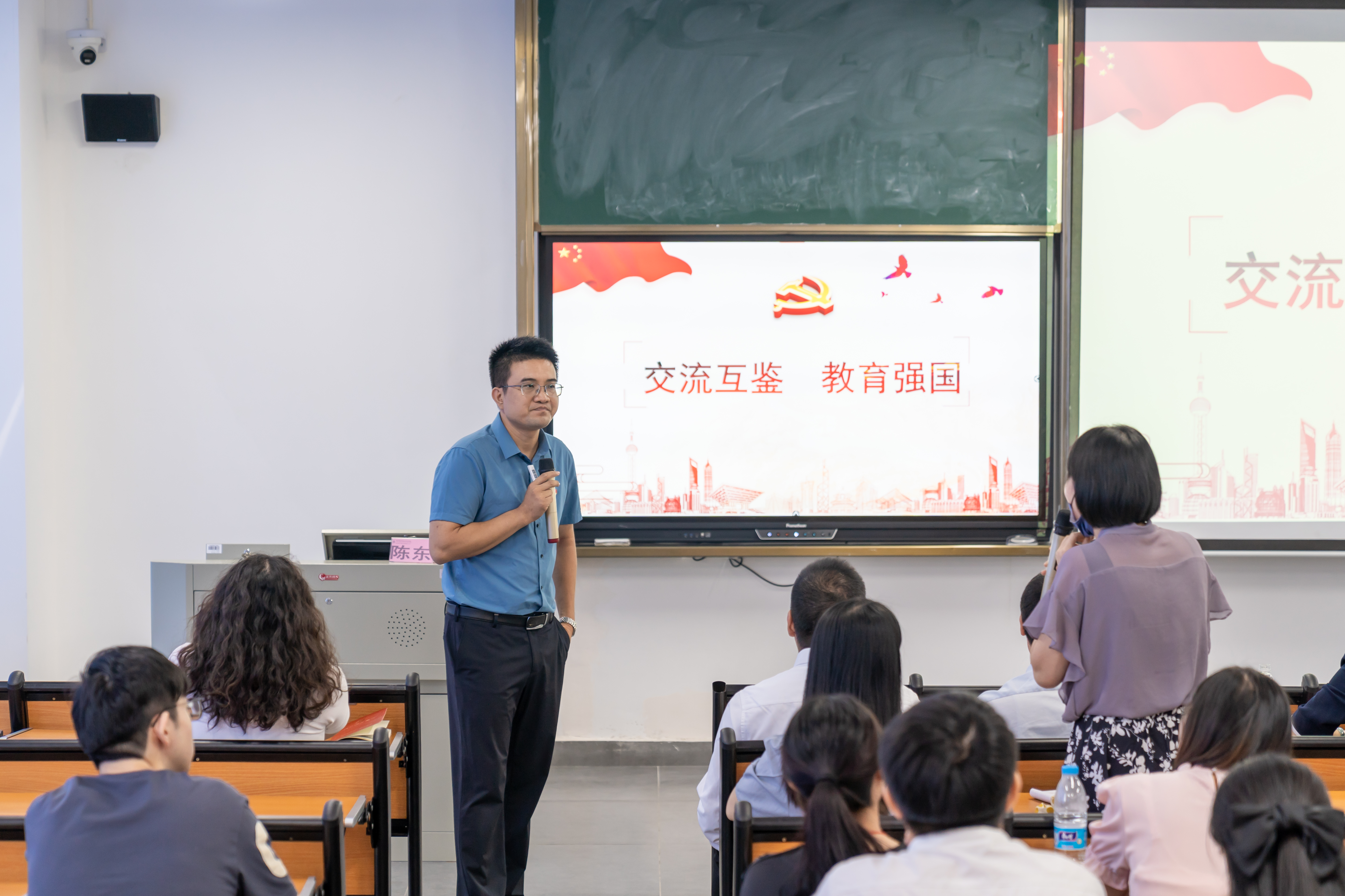 讲座一开始,陈东教授从本手及妙手的辩证统一给我们示范了如何上好开学第一课。接着从三个方面谈了如何上好每一堂思政课:一是用心备课,不断满足青年学生的成长需要,坚持“政治性和学理性相统一”;二是用情授课,持续发挥立德树人的关键作用。真心关心爱护学生,跟学生产生共情,进而在理论上形成共鸣,在润物细无声中达到立德树人的效果;三是用力躬行,自觉融入大思政课建设的大局。并针对思政课教师如何从教学片段到每一堂课都“但求最优“提出了建议。讲座最后,陈东教授与现场老师进行交流互动,深入探讨交流思政课堂教学以及比赛技巧等问题。