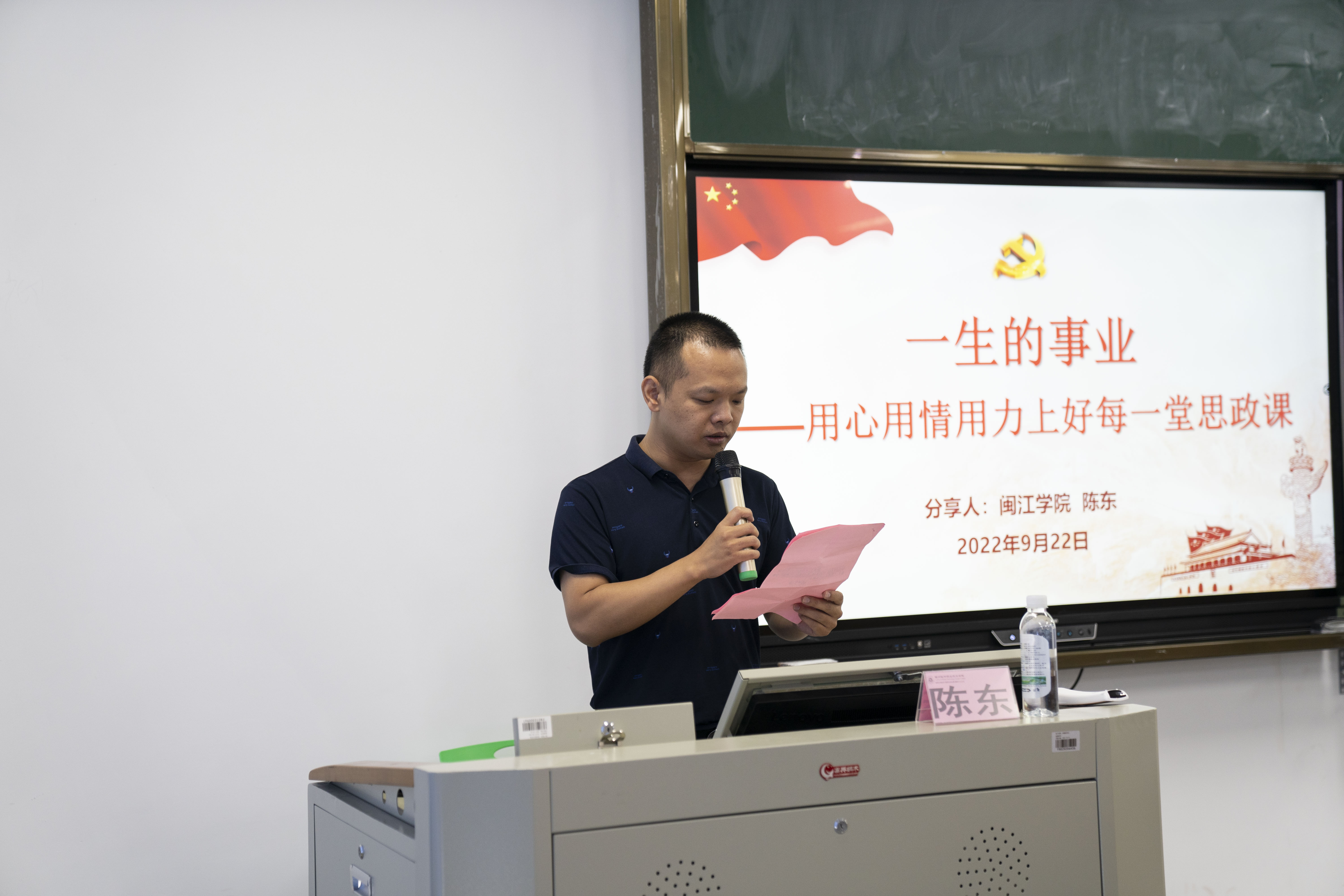 为进一步深入学习习近平总书记关于办好思政课的重要论述,落实思政课立德树人的根本任务,鼓励教师勇于担当、坚守初心。9月22日上午,我校邀请闽江学院陈东副教授来校做“用心用情用力上好每一堂思政课”主题讲座。学校党委书记林莺、学校党委副书记林艺勇出席讲座,党委工作部(宣传部)、马克思主义学院全体思政教师、全体政工人员参加。讲座由林艺勇副书记主持。