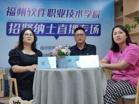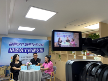 刚一开播,现场氛围一下沸腾起来。镜头前,主播与福州软件职业技术学院招聘负责老师交流互动,详细介绍了校园环境、院系分类、特色专业、招生录取及未来发展等情况。