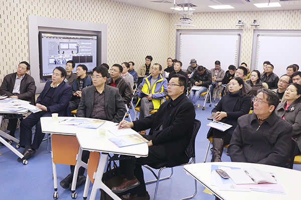 在未来实训室,严星副局长首先向与会人员介绍了学院信息化建设的一些情况。严副局长说:“福州软件职业技术学院校园信息化建设是福建省的标杆,今天借此机会,咱们齐聚福软,来见识下现代教育的新模式,比对下我们目前教育与现代教育存在的差距。”随后,任直副院长以互联网+职业教育生态云解决方案的演讲,向大家介绍了教育先生产品如何在校园信息化建设中的应用和实施。