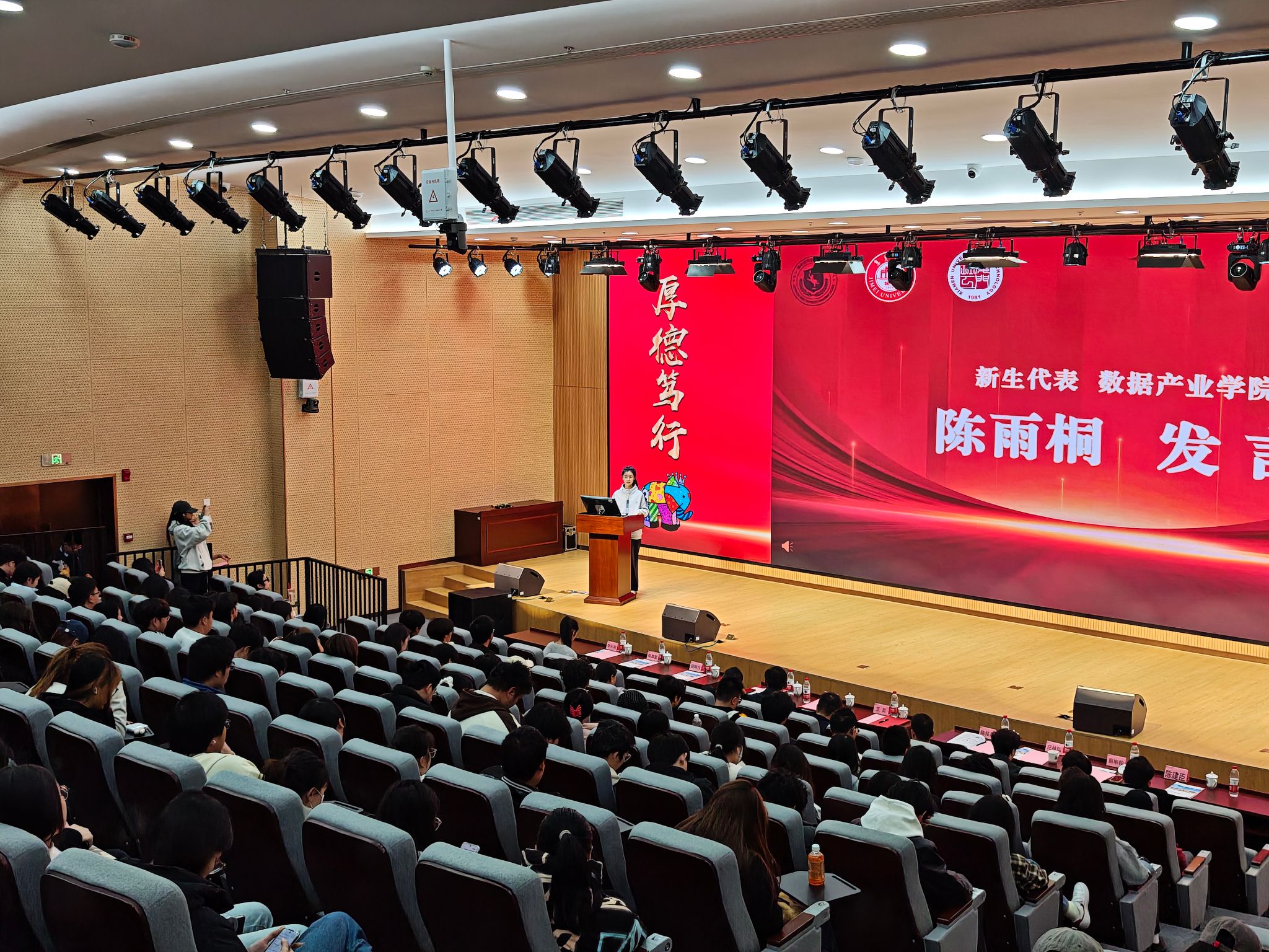 25 级数据产业学院的陈雨桐同学作为新生代表登台发言,道出了全体新生的共同心声:“从报名的那一刻起,我就定下了目标 —— 不仅要拿到本科文凭,更要在这个过程中提升专业能力,为未来就业增添底气。”她承诺,将以此次开班为新起点,认真对待每一门课程,积极向老师同学请教,合理安排学习时间,用饱满的热情和踏实的行动追逐梦想,不辜负学校、老师与家长的期望。