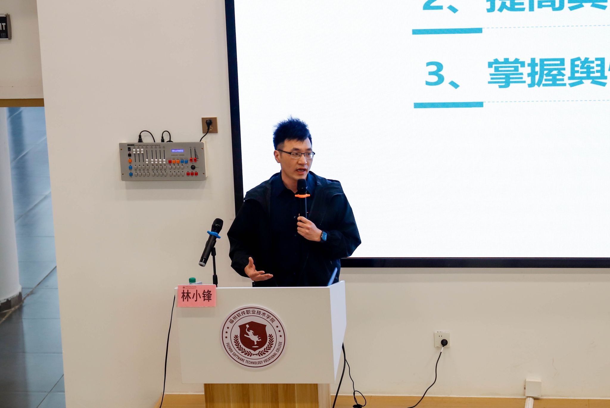 为深入贯彻基层治理现代化建设要求,切实强化基层党组织、学校宣传队伍舆情研判、推演与应急处置能力,筑牢安全稳定工作防线,12月17日,我校在数字报告厅举办舆情推演与应急处置能力提升培训讲座。特邀福建后方信息科技有限公司常务副总经理、东南舆情研究中心首席分析师林小锋授课,各党总支书记、副书记,各党支部书记、全体宣传员、党委组织部(党委宣传部、党委统战部)成员共70人参加。