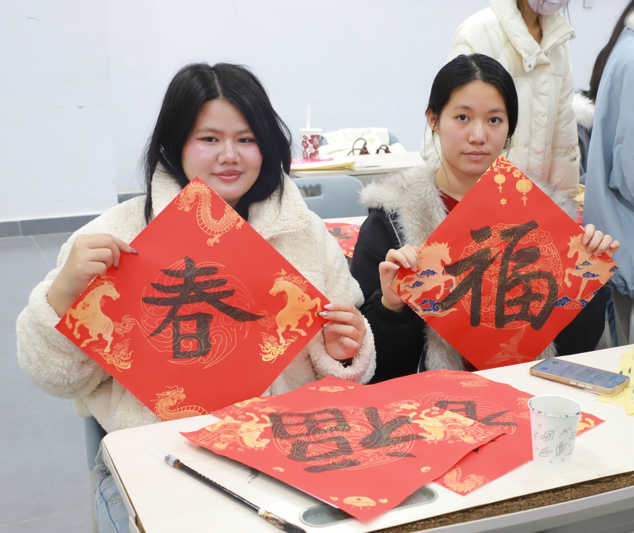 冬至阳生,岁回律转。在这个承载团圆祈福寓意的传统节日夜,福州软件职业技术学院国际学院为 38 名中泰职业技能培训泰国学员举办书法写 “福” 字文化体验活动。我校游戏产业学院志愿者全程协助,以笔墨为桥,让学员沉浸式感受中国书法魅力,传递跨文化温暖与祝福。