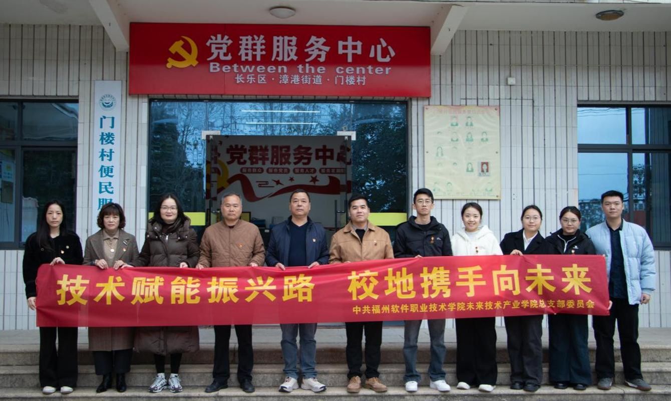 为深化校地党建合作,推动教育资源与乡村发展的深度融合,整合高校与乡村双方优势,凝聚“以育人之力助力乡村振兴”的共识。中共福州软件职业技术学院未来技术产业学院总支部委员会与中共福州市长乐区漳港街道门楼村总支部委员会于2026年1月6日在漳港街道门楼村举行揭牌共建仪式。我校未来技术产业学院党总支书记林海、党总支副书记柯林逸炜、分团委书记许玉菁、学生第一党支部书记戴慧贞、学生第二党支部书记陈桂贤以及思政辅导员揭亦杰,福州市长乐区漳港街道门楼村党总支书记兼村委会主任柯瑞祥、党总支副书记兼村务指导员柯金品、党总支委员柯美榕、陈雪珍和党总支党员陈梦妮参与此次签约仪式。本次仪式由未来技术产业学院学生第一党支部书记戴慧贞主持。