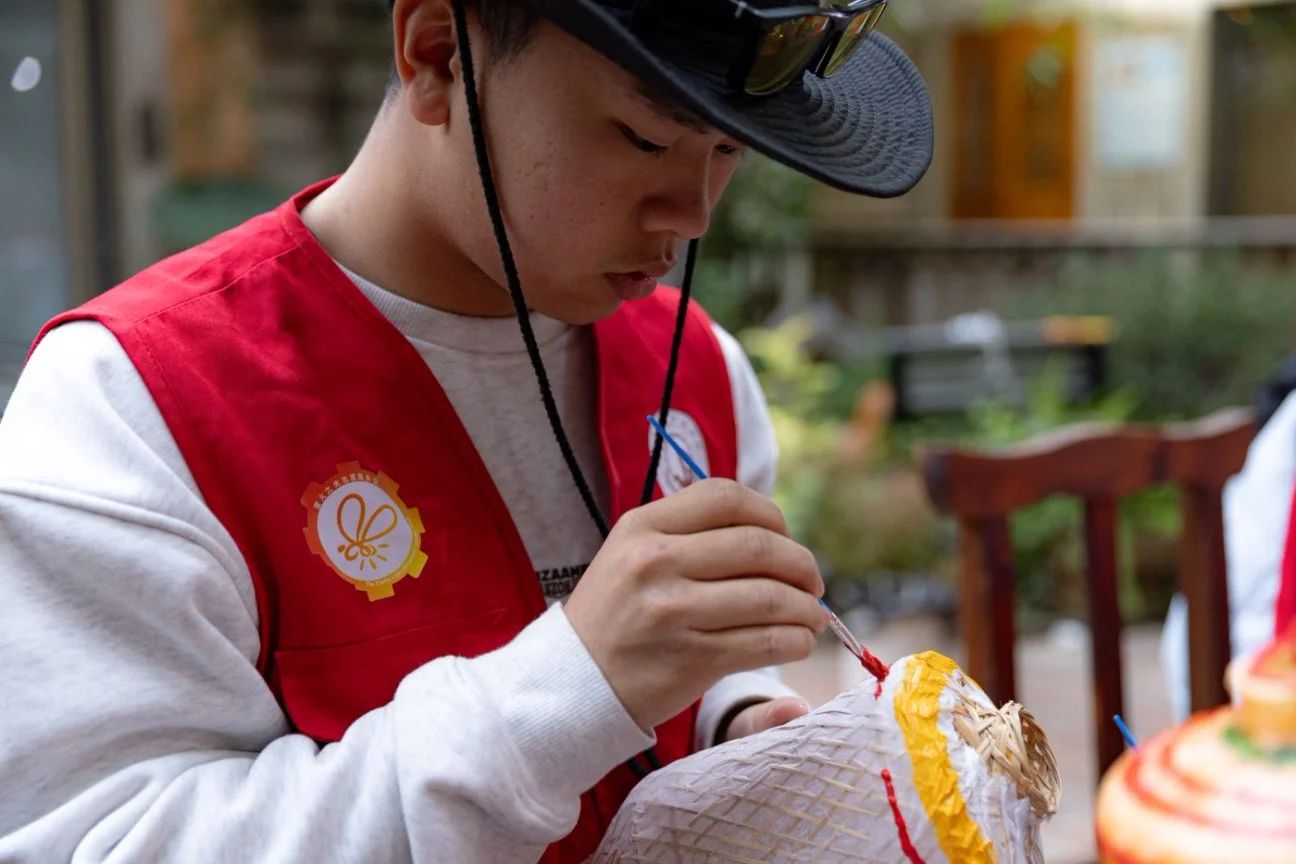 第二站,实践队员学习“非遗”技艺—莆田油纸灯笼。实践队员通过民俗老师耐心讲解的方式学习莆田油纸灯笼的制作过程,随后亲身体验了油纸灯笼制作中“糊、绘”两个环节,在制作过程中队员们深入了解莆田油纸灯笼的特色,包括它的材质、造型风格以及背后的民俗故事,深刻领悟了优秀传统文化的魅力与价值。