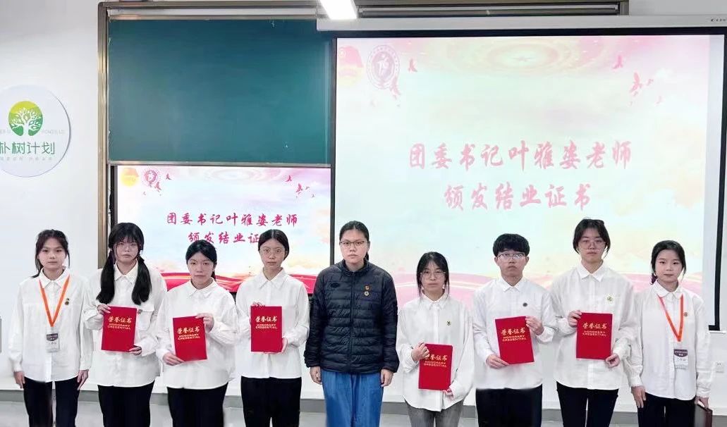 团委书记叶雅姿老师为入团积极分子颁发结业证书,希望学员们能够将所学所悟转化为实际行动,做到知行合一、学以致用,不断提升自身的综合素质和能力水平。做“四有”青年,坚定不移听党话、跟党走,成为中国共产党的助手和后备军,践行“请党放心,强国有我”的铿锵誓言,谱写新时代的青春之歌。
