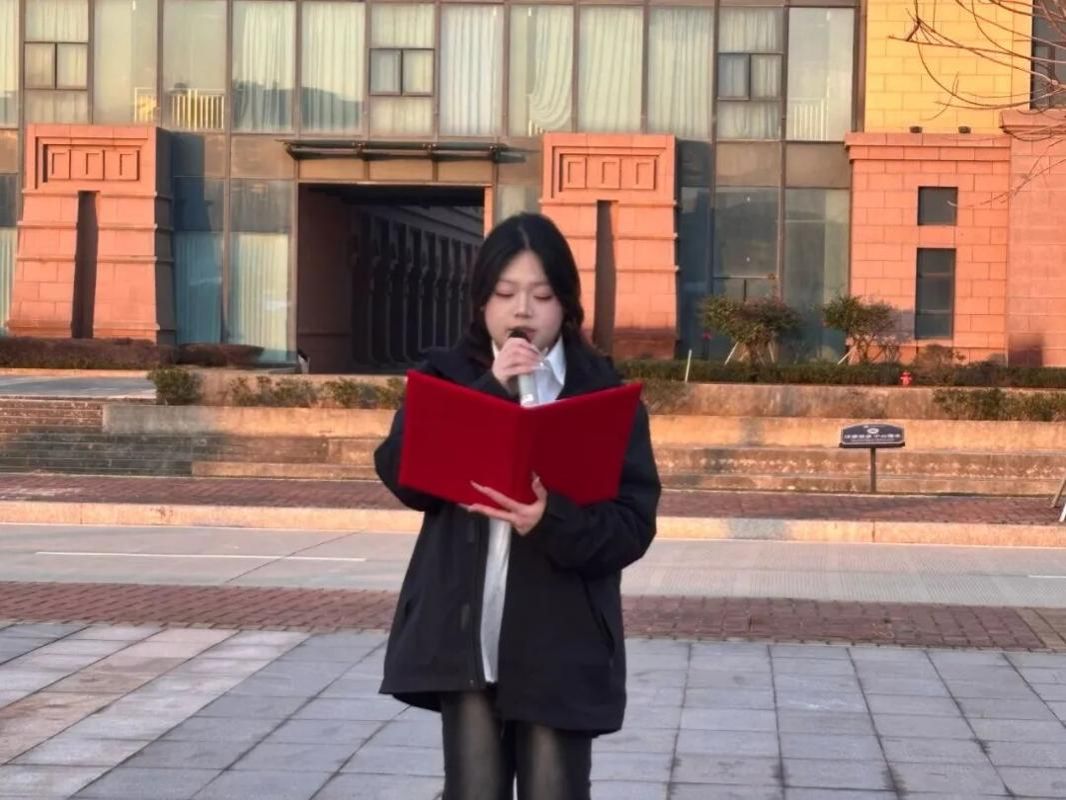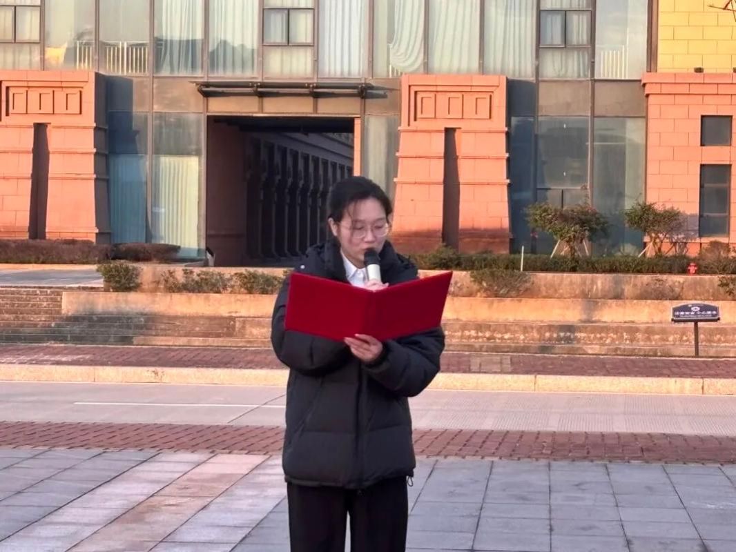 升旗仪式结束后,学生代表王可馨同学在国旗下讲话。她的话语铿锵有力,传递着当代青年的责任与担当,深深感染了在场的每一位师生。讲话中她分享了自己的成长与思考。她强调,青年一代的梦想与奋斗,从来都与国家的命运紧密相连。只有将个人的小目标融入民族复兴的大蓝图中,才能让青春的光芒绽放得更加璀璨。