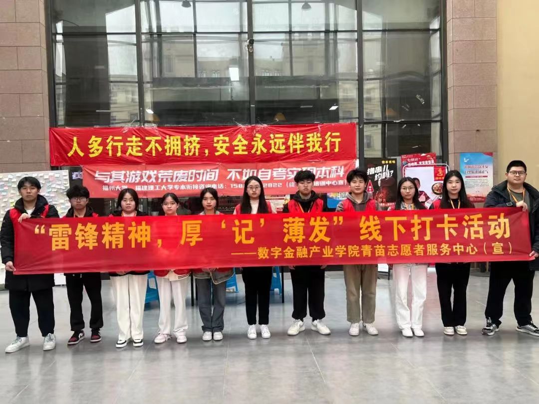 为响应“向雷锋同志学习”的时代号召,3月13日,数字金融产业学院青苗志愿者服务在校园里采用新媒体、福软通、线上线下、便利贴等开展“学习雷锋精神”宣传教育活动。