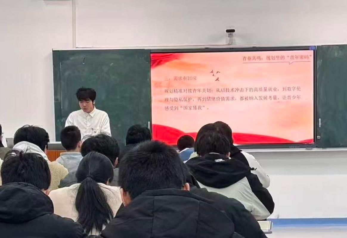 在课程讲授过程中,林诗尧同志结合规划内容与青年实际,系统解读了规划中的“青年密码”。他从“成长有保障”“奋斗有舞台”“需求有回应”三个维度展开,通过具体政策与案例,如“青年发展友好型社会”建设、AI与生物制造等前沿领域的青年机遇、数字伦理与情感需求的关切等,生动阐释了国家规划与青年发展的紧密联系。他强调,青年应主动将个人成长融入国家发展,在科技创新、基层服务、文化传承等领域施展才华。