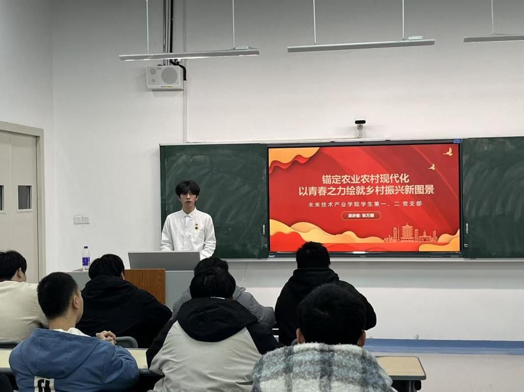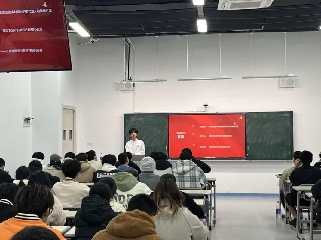 为深入学习贯彻习近平新时代中国特色社会主义思想,全面落实中央农村工作会议精神,引导入党积极分子和青年党员准确把握新时代“三农”工作的方向要求,进一步增强服务乡村振兴的思想自觉与行动自觉,2026年1月13日,我校未来技术产业学院学生第一、二党支部在L322开展党员微党课第二十二讲。本次课程由学生党员张万顺同志主讲,课程紧扣时代主题,将理论学习与青年使命紧密结合,为入党积极分子们带来了一堂思想深刻、内容充实的专题党课。