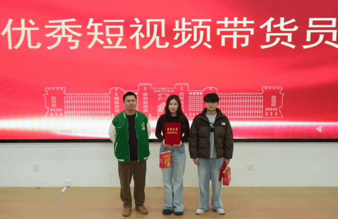 颁奖环节高潮迭起,现场氛围热烈。数字影视传媒产业学院领导为表现突出的学子分别颁发 “优秀主播”“优秀运营”“优秀短视频带货员” 及 “卓越进步奖” 四大奖项。获奖学子中,既有凭借专业表达斩获高人气的直播达人,也有精准把控数据、助力业绩增长的运营能手,更有快速成长、突破自我的进步典型,他们的亮眼表现正是项目制改革成效的生动写照。