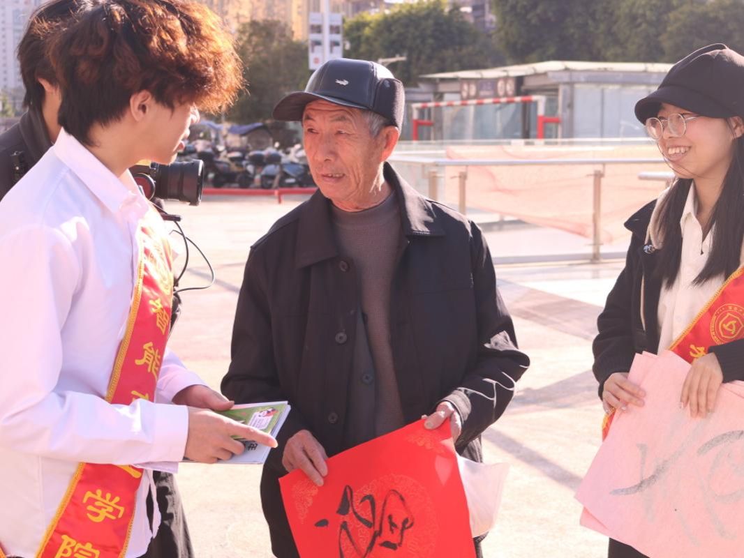 贴春联、送福字,是中华民族延续千年的传统民俗,承载着人们对美好生活的向往与祝福,更是传承中华优秀传统文化、厚植家国情怀的重要载体。恰逢新春将至,为给家乡增添浓厚的节日氛围,让传统民俗焕发新生机,耕心社会实践队紧扣“福传万家”文化主题,专门组织了“笔墨传情・春联送福”实践活动,以手写笔墨传递新春祝福,用实际行动传承民俗文化,让福韵乡情浸润人心。
