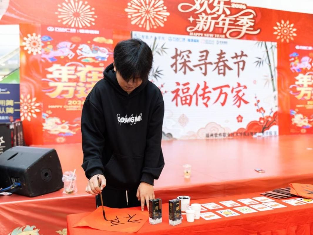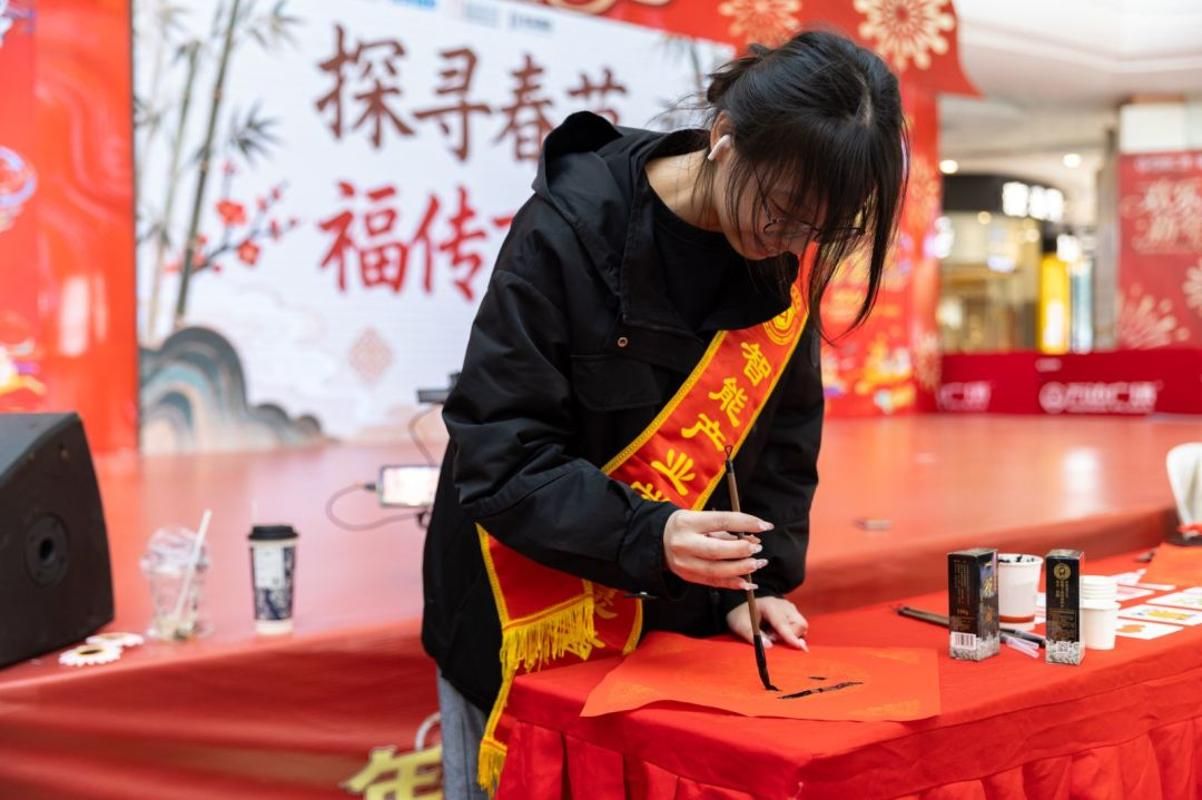 贴春联、送福字,是中华民族延续千年的传统民俗,承载着人民对美好生活的向往。恰逢新春将至,实践队队员们提前研习书体,组织了“笔墨传情・春联送福”实践活动,在现场书写送福中践行文化传承使命。