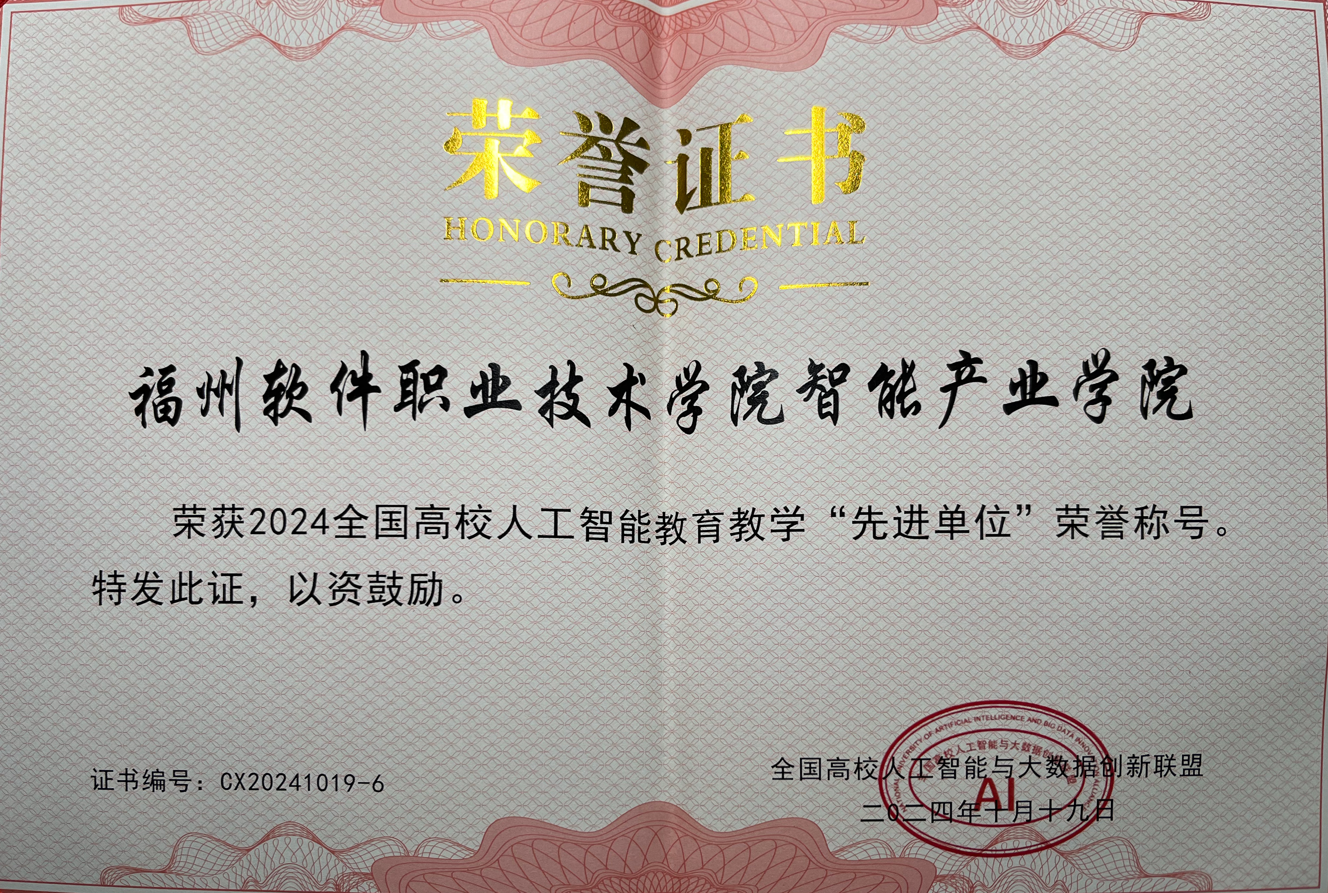 10月19日,“产学合作、协同育人”2024第七届全国高校人工智能大数据区块链元宇宙数字经济教育教学创新论坛在北京顺利召开。智能产业学院荣获2024全国高校人工智能教育教学“先进单位”荣誉称号。
