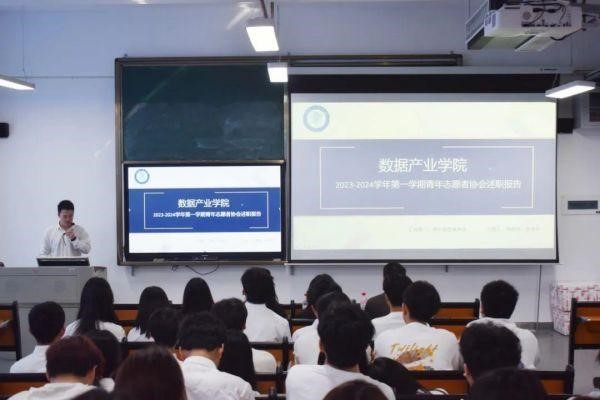 “一转眼,秋去冬来,不知不觉中我们走完了半个学年。”主持人宣布 2023-2024学年第一学期数据产业学院团委学生组织述职大会正式开始。