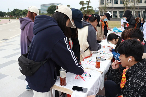 活动现场,悬挂了标语,设置了宣传展板,志愿者们在一旁引导帮助同学们,并给每位同学分放了糖果作为小礼物。参加活动的同学们在白色衣服上创作一幅幅构思巧妙、色彩丰富、生动形象的禁毒防艾涂鸦作品,呼吁亲友树立健康生活理念,表达了防艾的坚定决心。