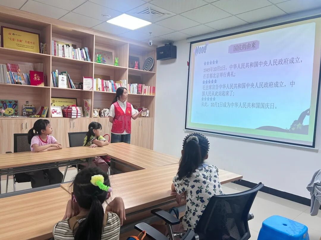 活动伊始,青苗志愿者服务中心陆思捷同学以“家国团圆”开篇,拉开中秋、国庆双节主题活动序幕。通过播放中秋习俗动画、讲解国庆节由来,引导小朋友们深化对双节的认知,感悟传统节日的团圆意蕴与国家发展的磅礴力量,进一步激发其传承中华优秀传统文化、厚植爱国主义情怀的情感。