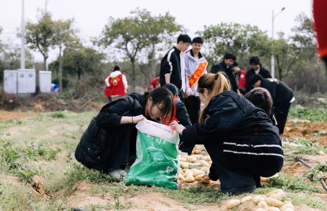 躬耕践初心,劳动庆丰收。3月28日,由我校智能建造产业学院、智能产业学院、数字金融产业学院三院联合组建的“趣耕”劳动教育联合志愿服务队,齐聚劳动教育基地开展土豆丰收采摘活动。从除草、松土、施肥到灌溉,大家亲历全程耕耘不易,今日共摘硕果,并将劳动成果共享,在躬行实践中体会收获之喜。