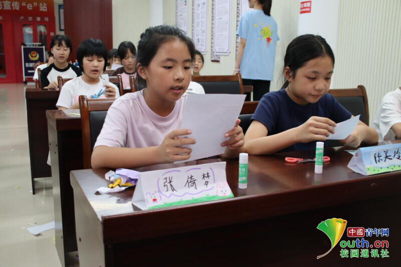 图为小朋友在贴线索条。胡陈龙 供图