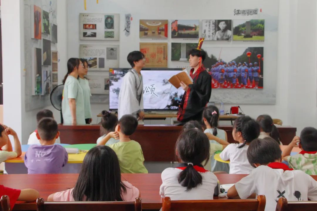 7月16日,志愿者们以小剧场的形式重现了《典籍里的中国》经典片段,采取古今交融、时空交织的演绎方式对典籍中深邃的思想内涵和传奇故事进行了情景化的展现和通俗化的阐释,并介绍了诵读方法及情感表达要点,赋予了沉寂文字生动鲜活的生命力。让小朋友们在享受文学滋养和文化熏陶的过程中,进一步提升对中华经典的欣赏能力和审美情趣。