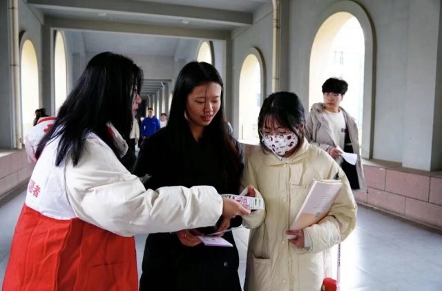 图为福软志愿者们在引导师生排队扫码填写献血登记表。中教网通讯员 许玉立 摄