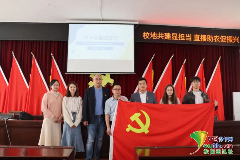 图为福州软件职业技术学院容艺影视产业学院领导老师与村代表进行直播内容的讨论。中国青年网通讯员 蔡鸿宇 摄