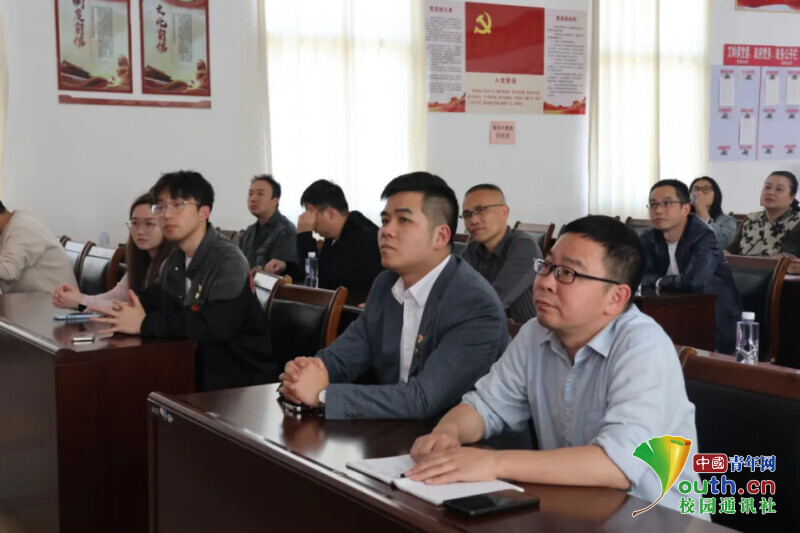 图为福州软件职业技术学院容艺影视产业学院领导老师及村主干和经办正在认真观看讲座。中国青年网通讯员 蔡鸿宇 摄