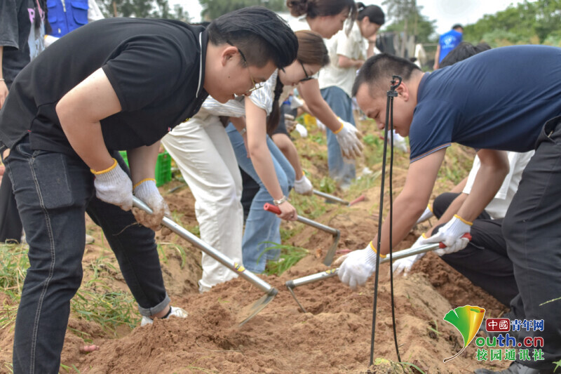 图为师生们在责任田上除草,收获成熟的红薯。中国青年网通讯员 许玉立 苏思瑜 摄