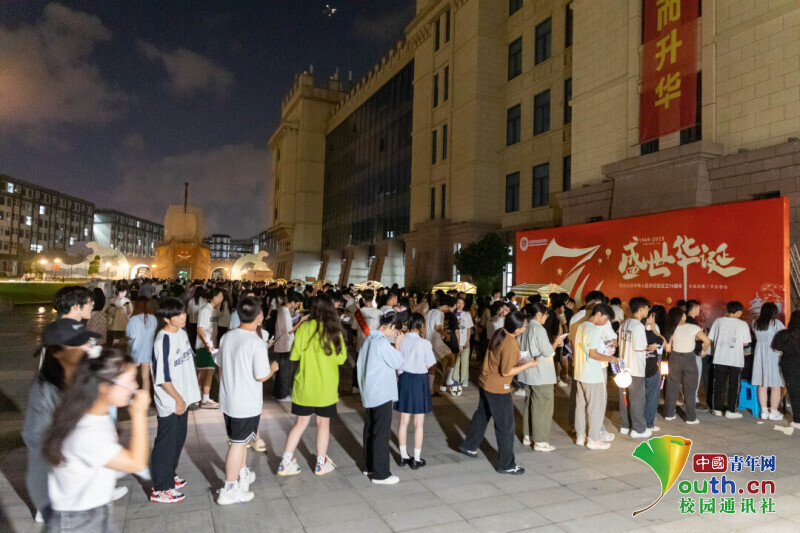 图为数据产业学院参与校团委举办的国庆打卡活动。中国青年网通讯员 刘旭斌 摄