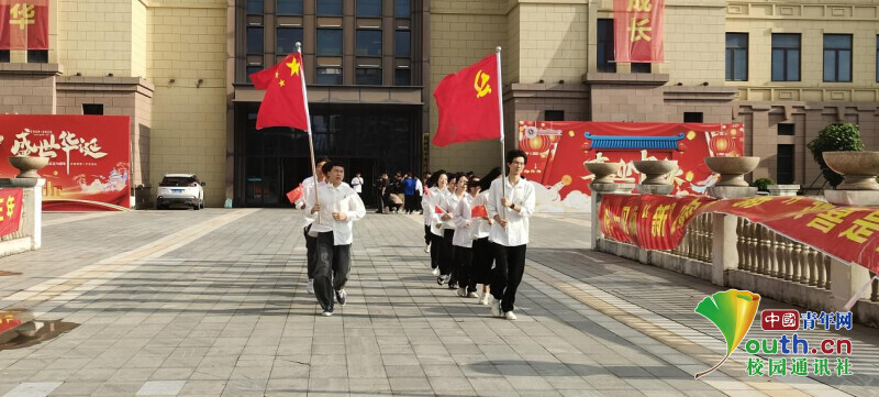 图为现代通信产业学院“奋进新时代 奔赴新征程”红色环校跑党日活动。中国青年网通讯员 蒋宛真 摄
