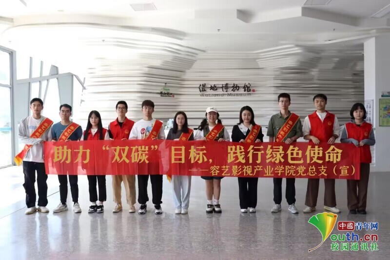 图为容艺影视产业学院于闽江河口湿地公园开展的党日活动。中国青年网通讯员 李宇焓 摄