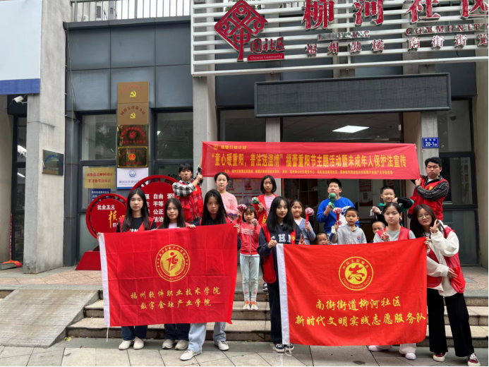 为切实做好未成年人保护宣传工作,引导未成年人提高自我保护意识,给未成年人营造健康良好的成长环境,同时结合重阳节节庆契机,引导孩子们感受中华优秀传统文化,传承尊老、敬老、爱老的传统美德,10月22日上午,在福州市鼓楼区民政局和鼓楼区南街街道办事处的指导下,福州知心社区服务中心联合南街街道柳河社区、福州软件职业技术学院数字金融产业学院团委在柳河社区举办以“童心暖重阳,普法送温情”为主题的重阳节普法宣传活动。