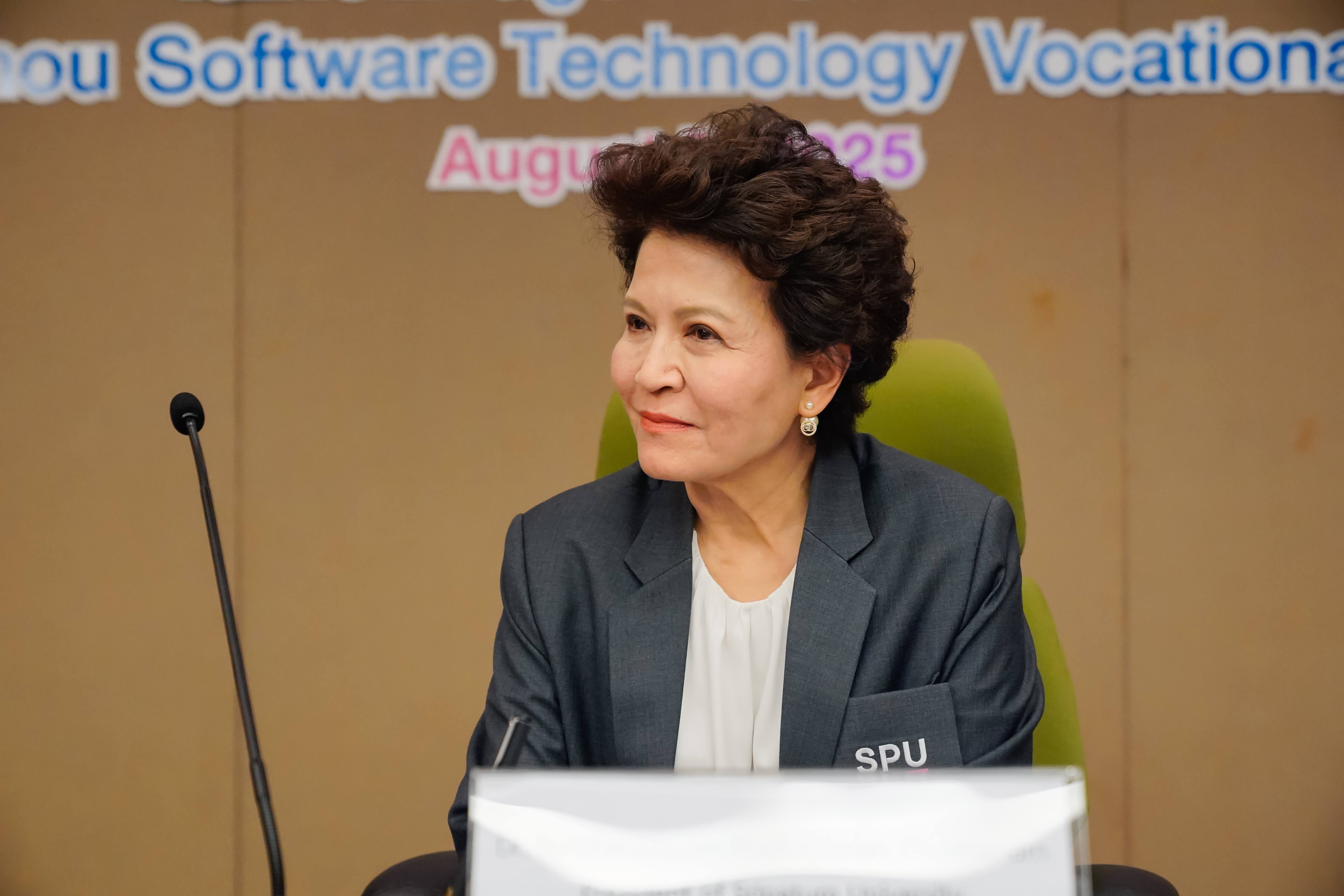 随后会谈中,斯巴顿大学校长拉查尼彭·普柯雅彭·普克曼女士强调,在科技飞速迭代与人口结构变化的双重驱动下,培养具备跨领域视野、驾驭前沿技术的人才已成为全球教育的共同使命。“教育的本质是连接知识与实践,连接本土与全球,连接传统与未来。”她高度评价福软在职业教育数字化和产教融合领域的探索,表示斯巴顿大学愿以此次交流为起点,深化与福软学院在技术赋能教育、跨文化研学等领域的协同创新,让两国学生在互学互鉴中成长为推动中泰经济文化交流的坚实纽带。