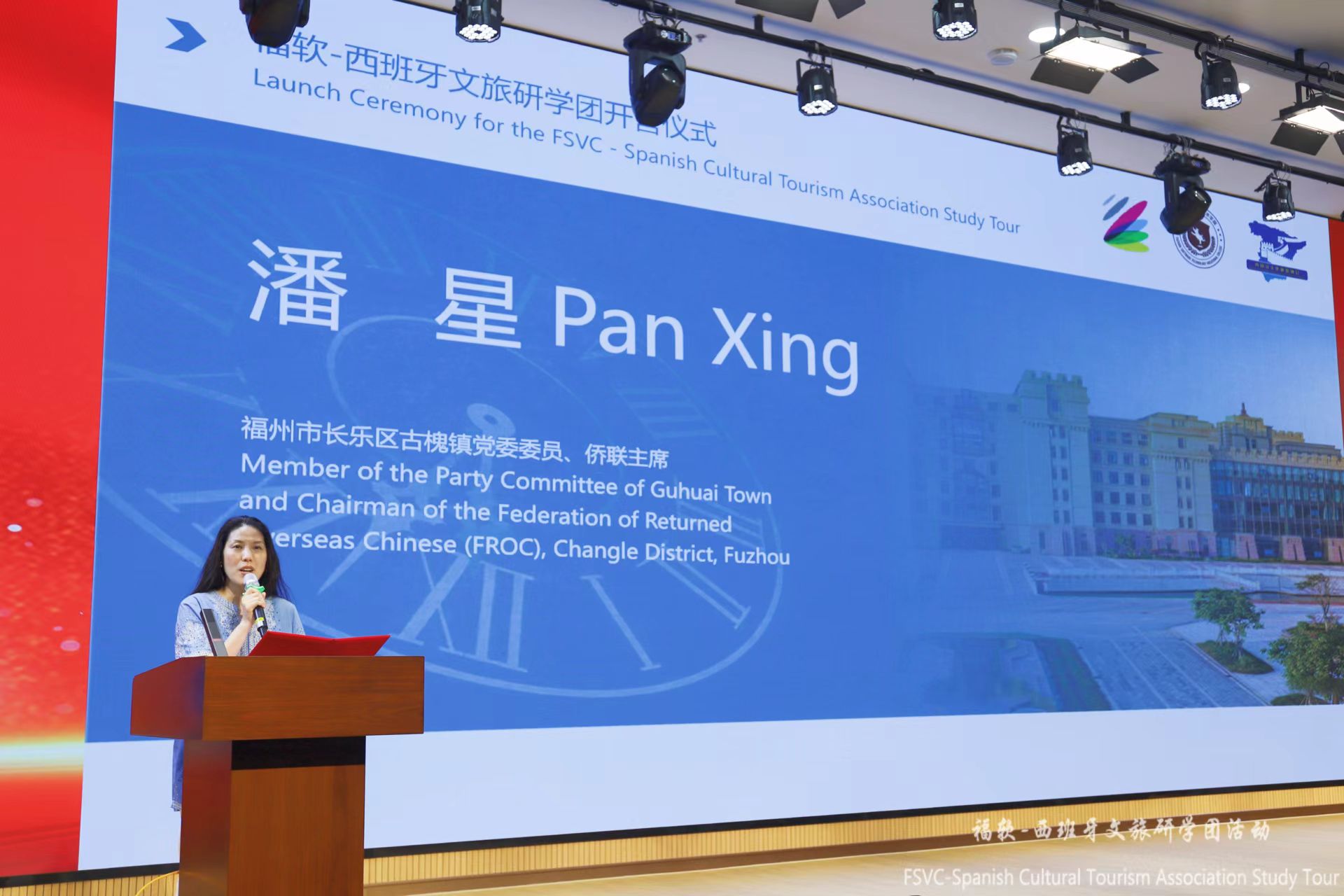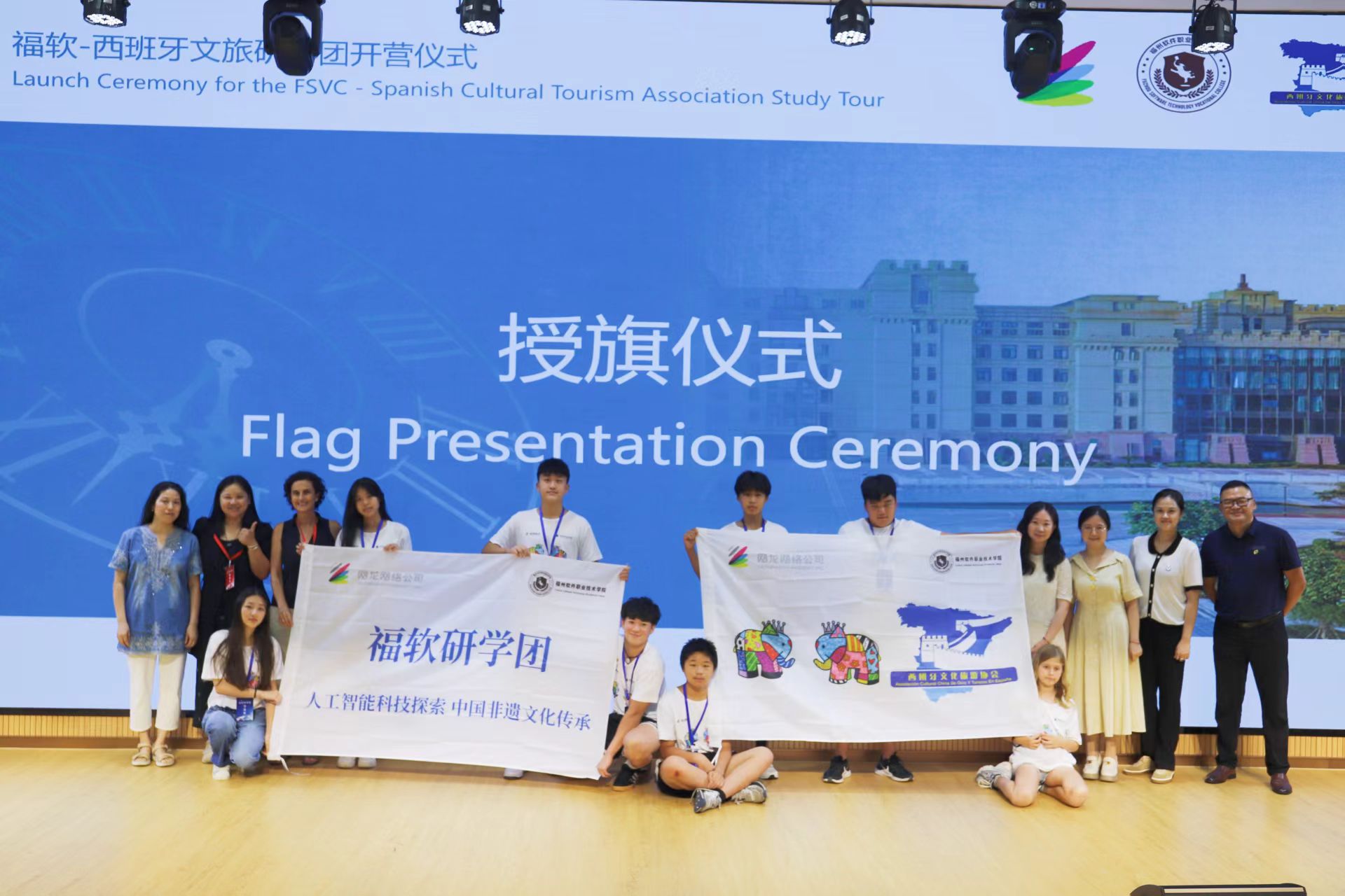 仪式环节庄重而富有象征意义。我校校长助理、工会主席柯建琳向西班牙文旅研学团团长授予营旗,这面旗帜象征着责任与友谊,将引领大家开启一段收获满满的旅程。随后,我校与福州日报社国际传播中心、“印象•福州”大赛项目负责人詹舒清共同启动了“印象福州”文化记录项目。鼓励西班牙师生用镜头和文字记录研学中的精彩瞬间,以独特的视角讲述福州故事,让福州故事走向世界。